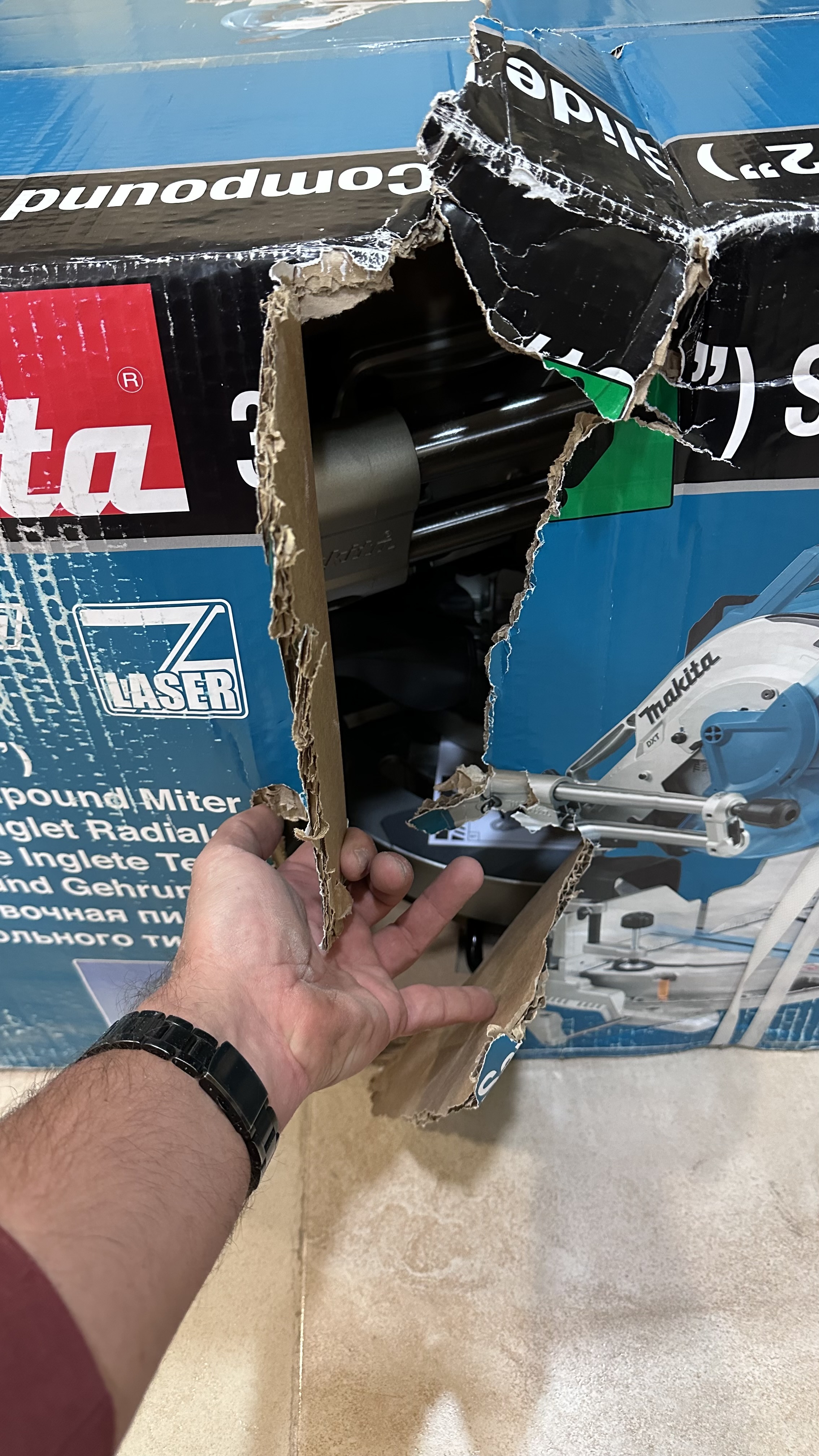 Según me ha dicho el transportista, al tirar de uno de los flejes, como no tiene protecciones interiores casi, la caja se ha roto, justo en ese lado por donde se ha roto, no tenía cartones protectores por dentro, por lo que el cartón de la caja exterior se ha hecho añicos