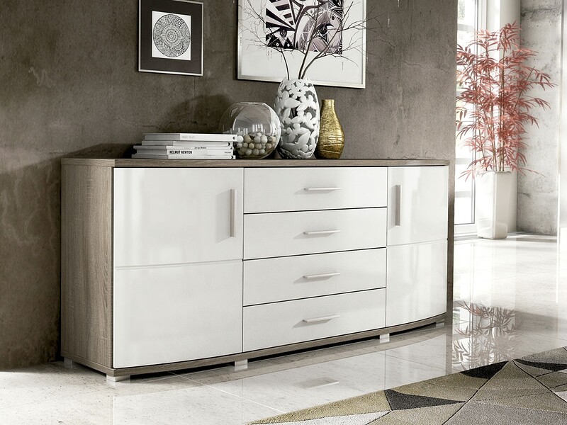 Bien, lo que tú deseas es un acabado al alto brillo conocido también como acabado piano. Trabajarlo con madera natural y con color blanco tiene sus bemoles. El pino tiene taninos que con el paso del tiempo dejan el color blanco de tono un poco amarillo. Opino igual que virutasibz, sería mejor usar DM (MDF) ya que su superficie es completamente plana y no tiene taninos. No tengo a mano un folleto con ese tipo de acabado, deja lo busco y te digo cómo hacerlo.