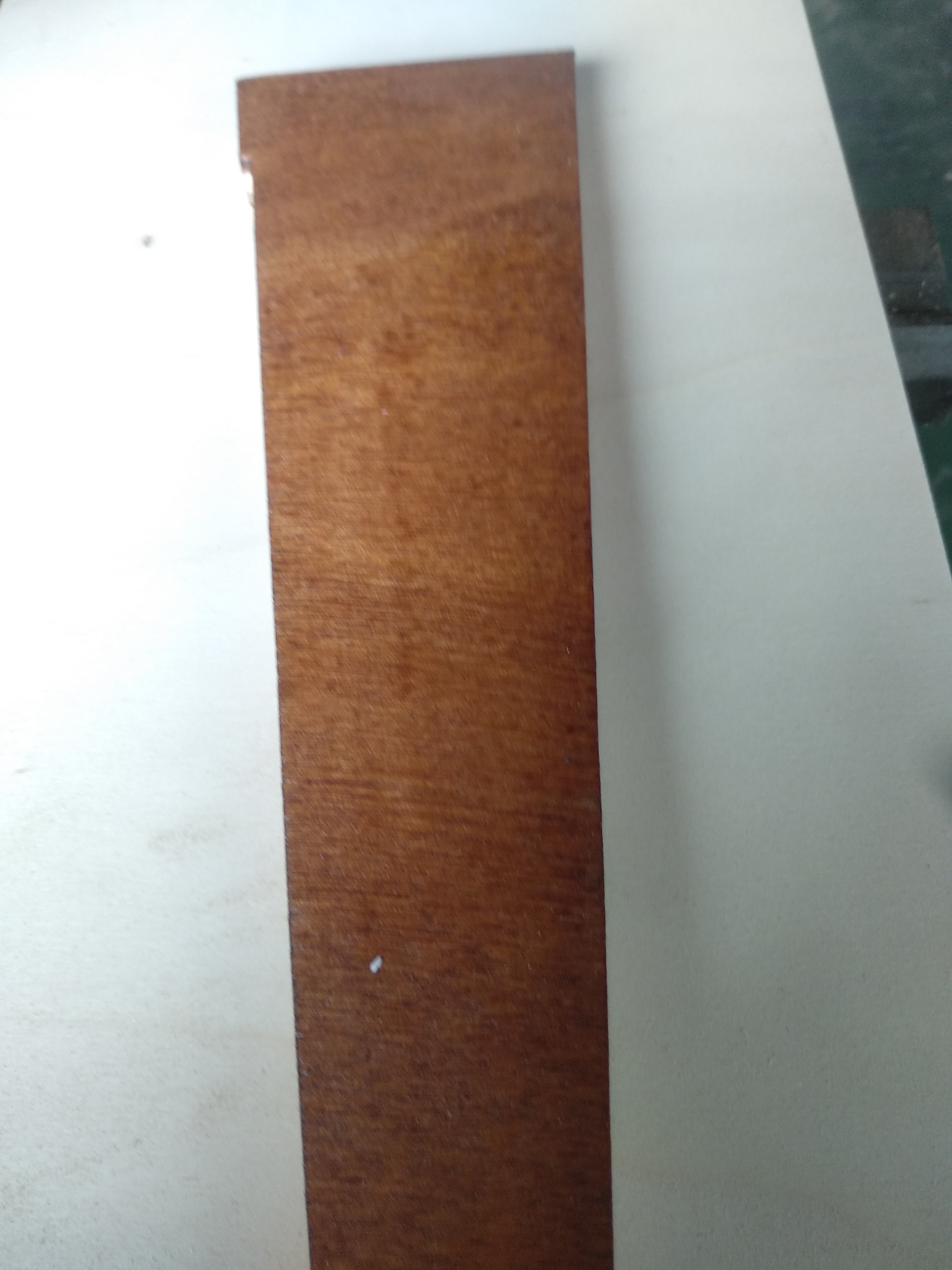 Y como acababa de comprar una lata de lasur color nogal (aceite para teca) se me ocurrio dar el aceite en un retal nuevo de contrachapado, una vez seco le di el barniz que estaba usando, el resultado es el de la foto, parece compatible, ojo, los productos eran compatible con el disolvente, no con agua. Le llamaremos “sintetico”.