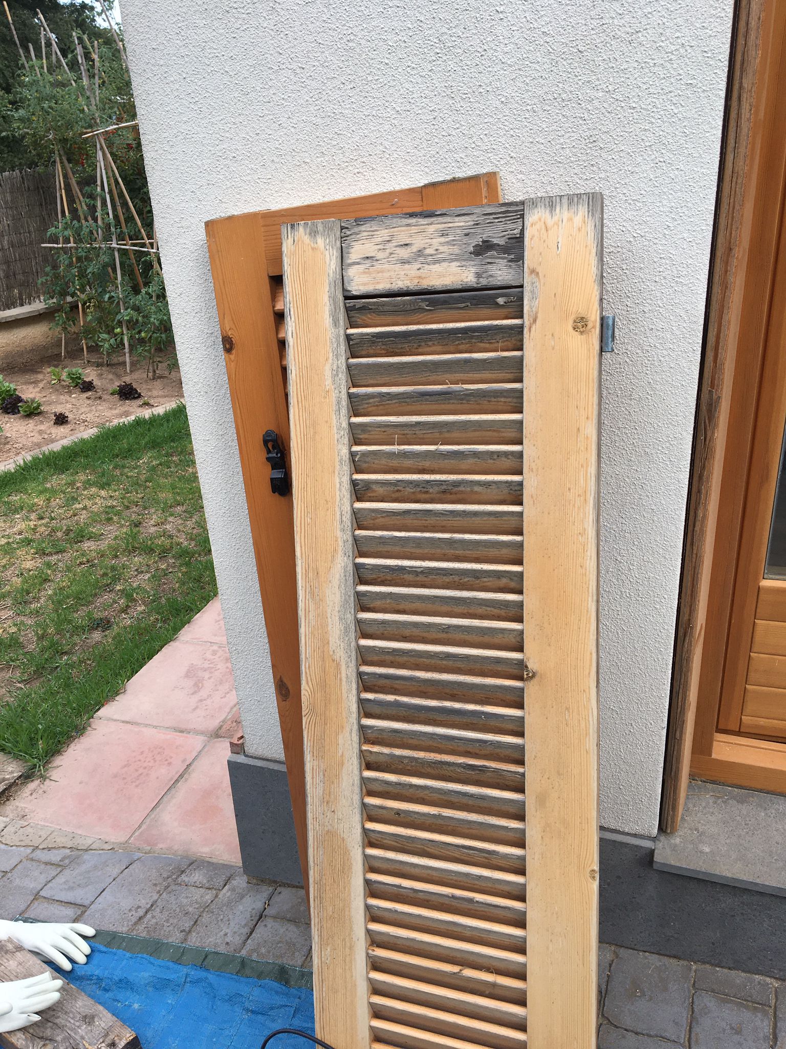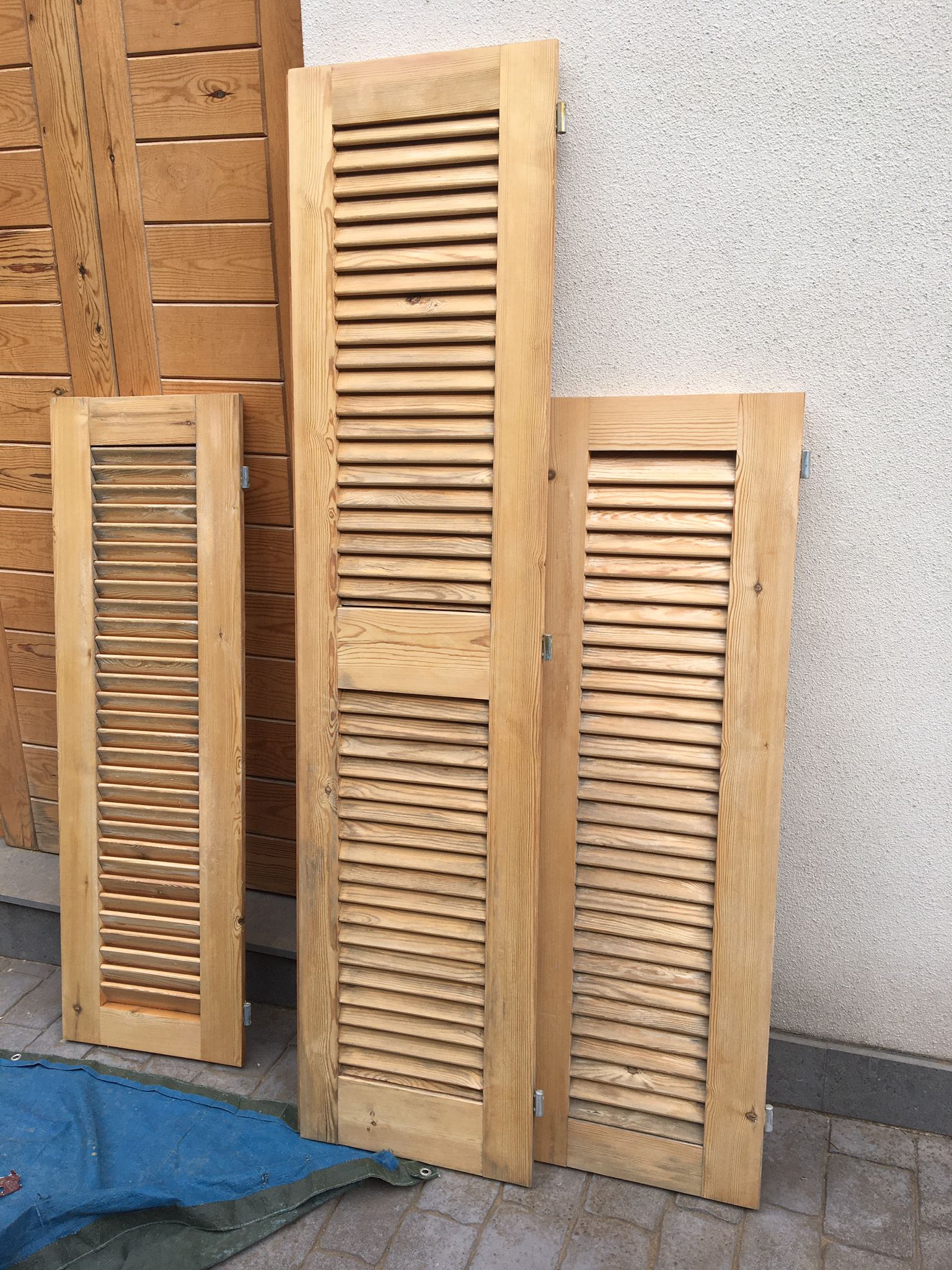 Os muestro el estado en que estaban alguna de las persianas, el lijado y tratamiento de saneamiento de la madera, y el barníz por la cara buena que traen las persianas.