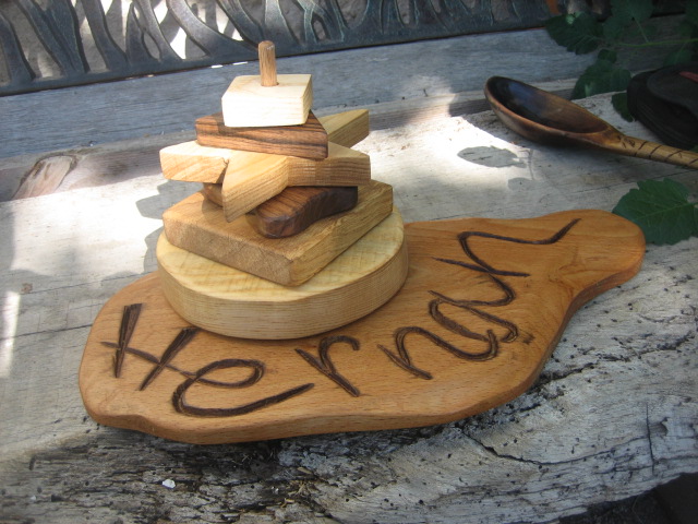el juego de piezas insertables lo hice con aceite de oliva que si que resalta las vetas. os meto unas fotos de otros que hice para mis sobrinos con retales de todo tipo de maderas, antes y después del aceite