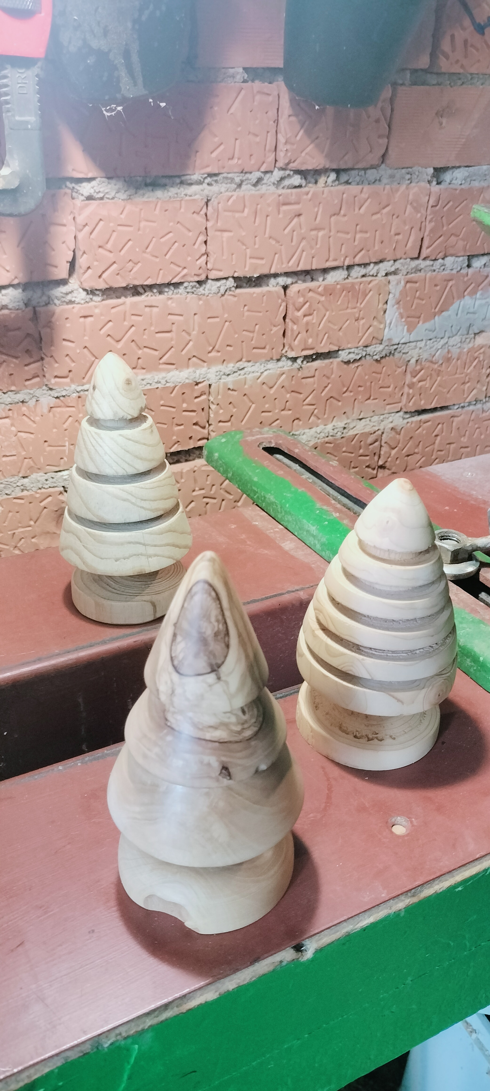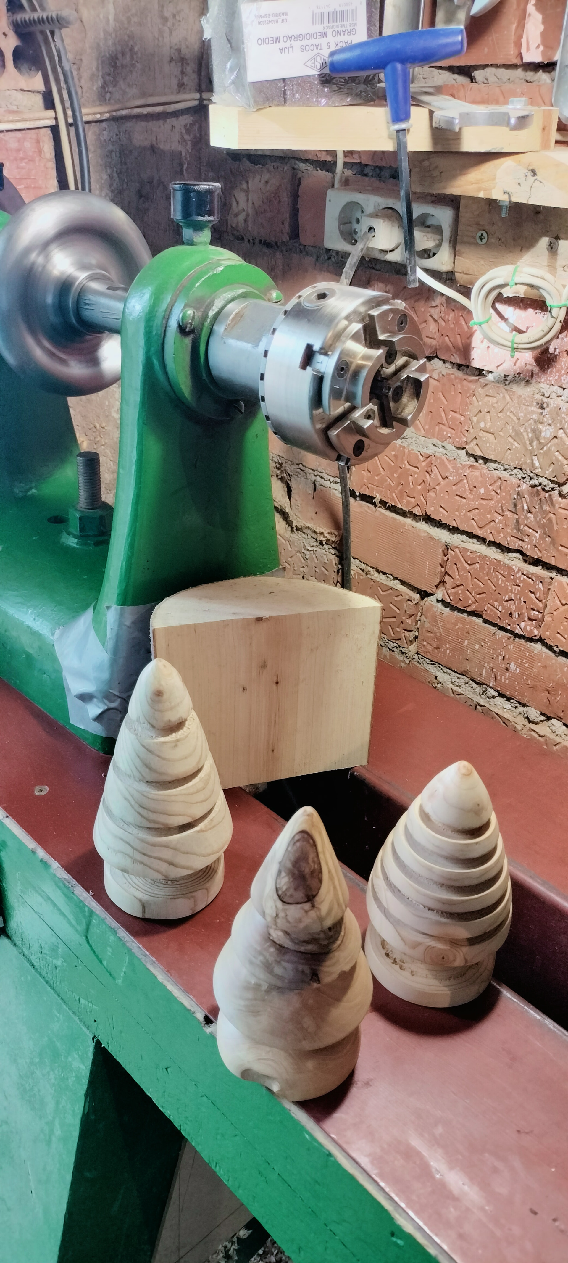 Unas pequeñas piezas hechas en menos de una hora con madera de desecho ( restos de poda) de pino, abeto y olivo. Es una chorrada, pero a ver si así se anima un poco más el tema de tornear y ver alguna pieza más. En mi humilde opinión, a mí es lo que más me gusta. Yo apenas sé, lo hago todo a mí manera, viendo videos de YouTube y con más ganas que conocimiento. Un saludo.