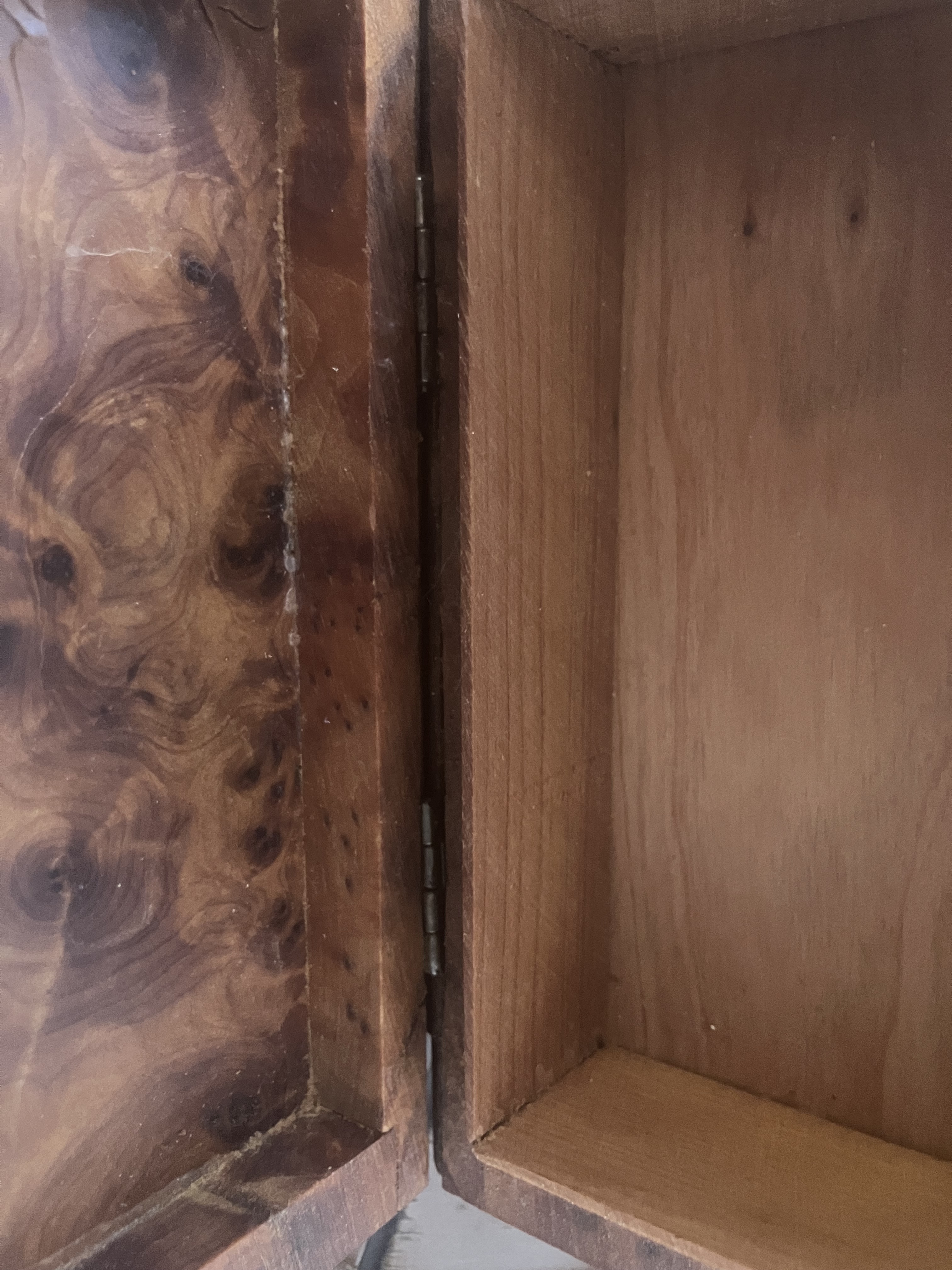 Tengo en casa un par de cajas que llevan unas pequeñas bisagras que van embutidas , en lugar de atornilladas.