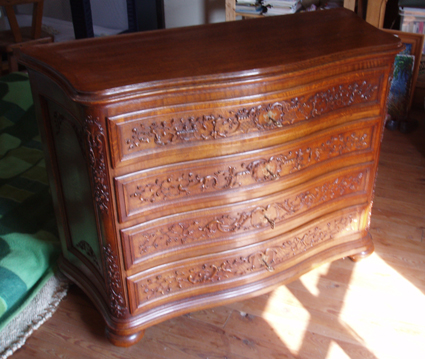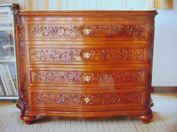 Hola A todos, intentaré de vez en cuando poneros algunos trabajos salido de mis manos durante estos 30 años de oficio. Esta cómoda es una copia del Museo de Artes decorativas de Lieja (Bélgica) donde estudié ebanistería 10 años luego 3 años de talla en madera y luego Bellas Artes en Escultura pero como decía en otro mensaje, la suerte ha sido de tener a mi papi ebanista y aprender el sabor de la madera desde pequeño.