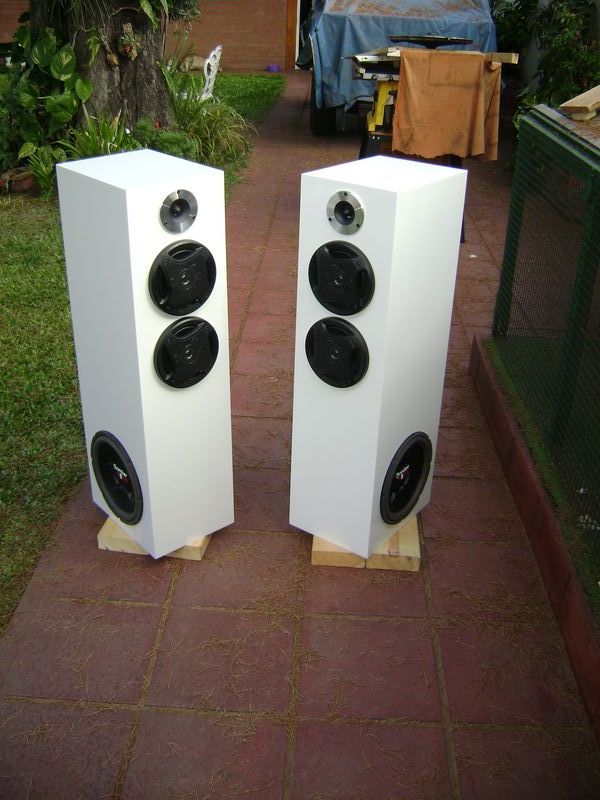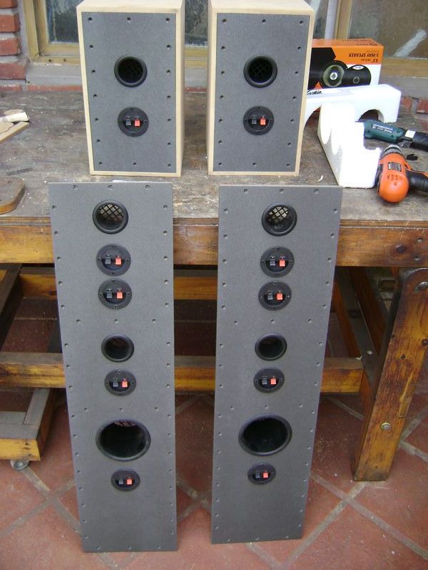 Tienen buena pinta, veo que las cajas grandes las has hecho cerradas y las pequeñas tipo bass reflex,¿ que tipo de aislante has utilizado y que criterios de diseño has utilizado para diseñarlas respecto a los altavoces que has elejido? Tambien me intersa el sistema de crossover o divisor que has utilizado que supongo debe ser activo y el escalonamiento de potencia segun el rango de frecuencia.
