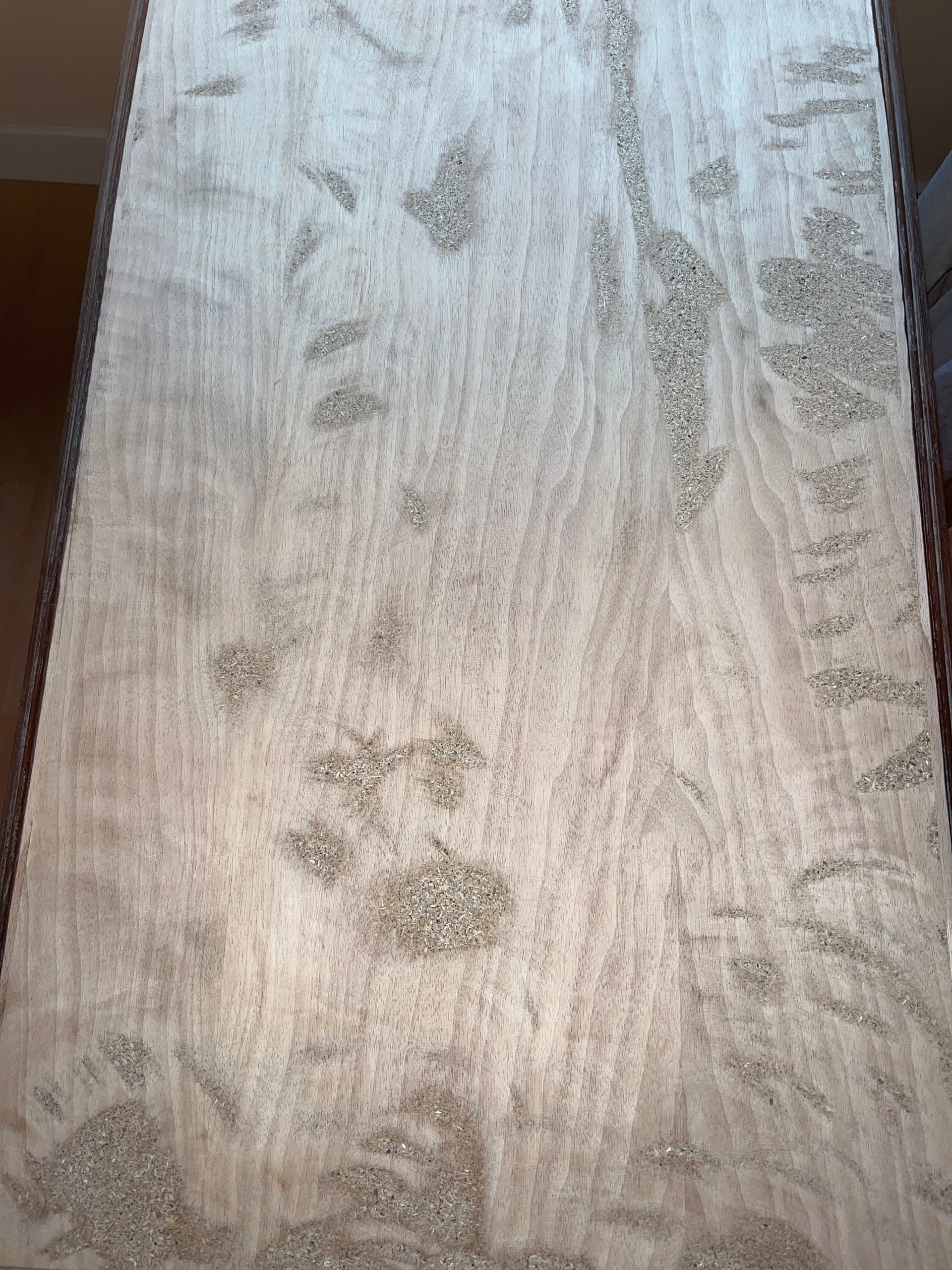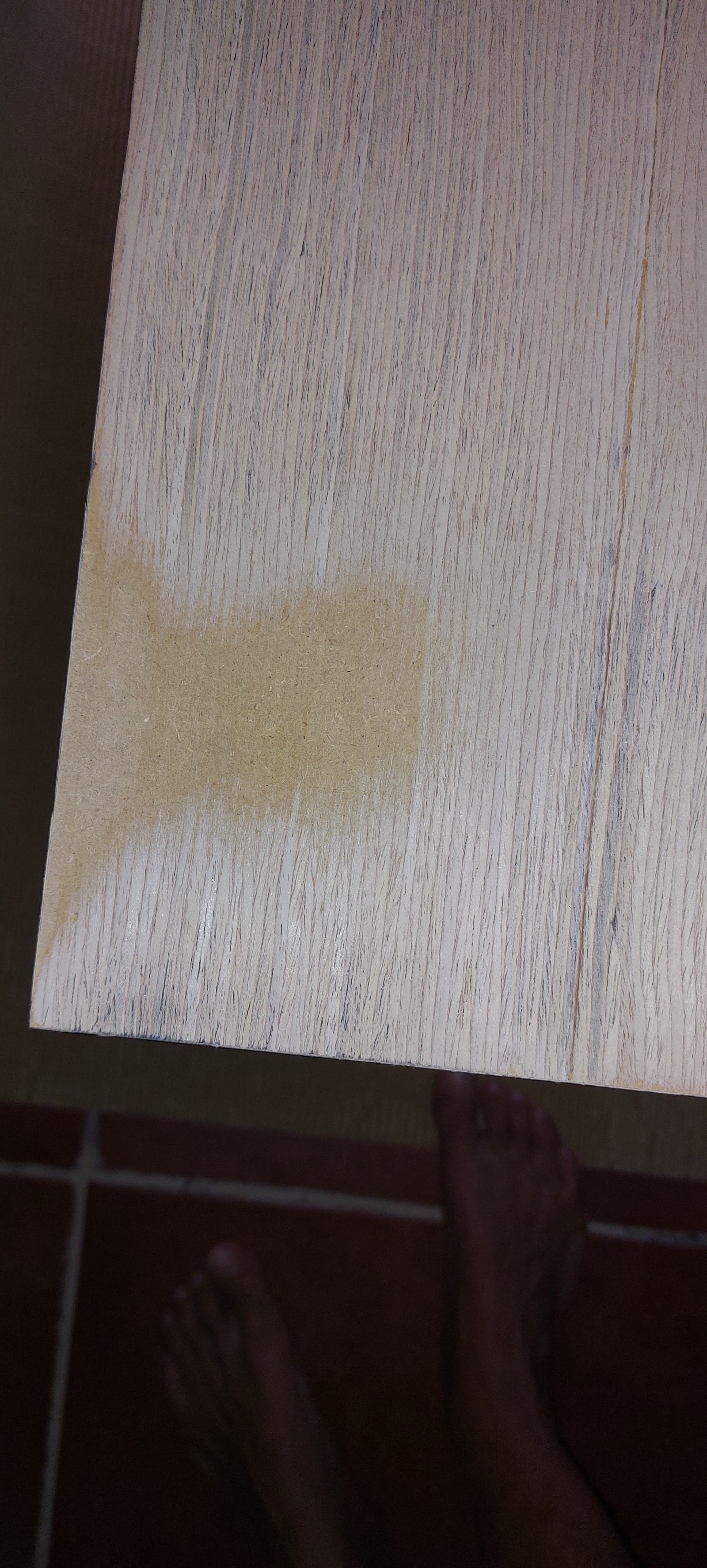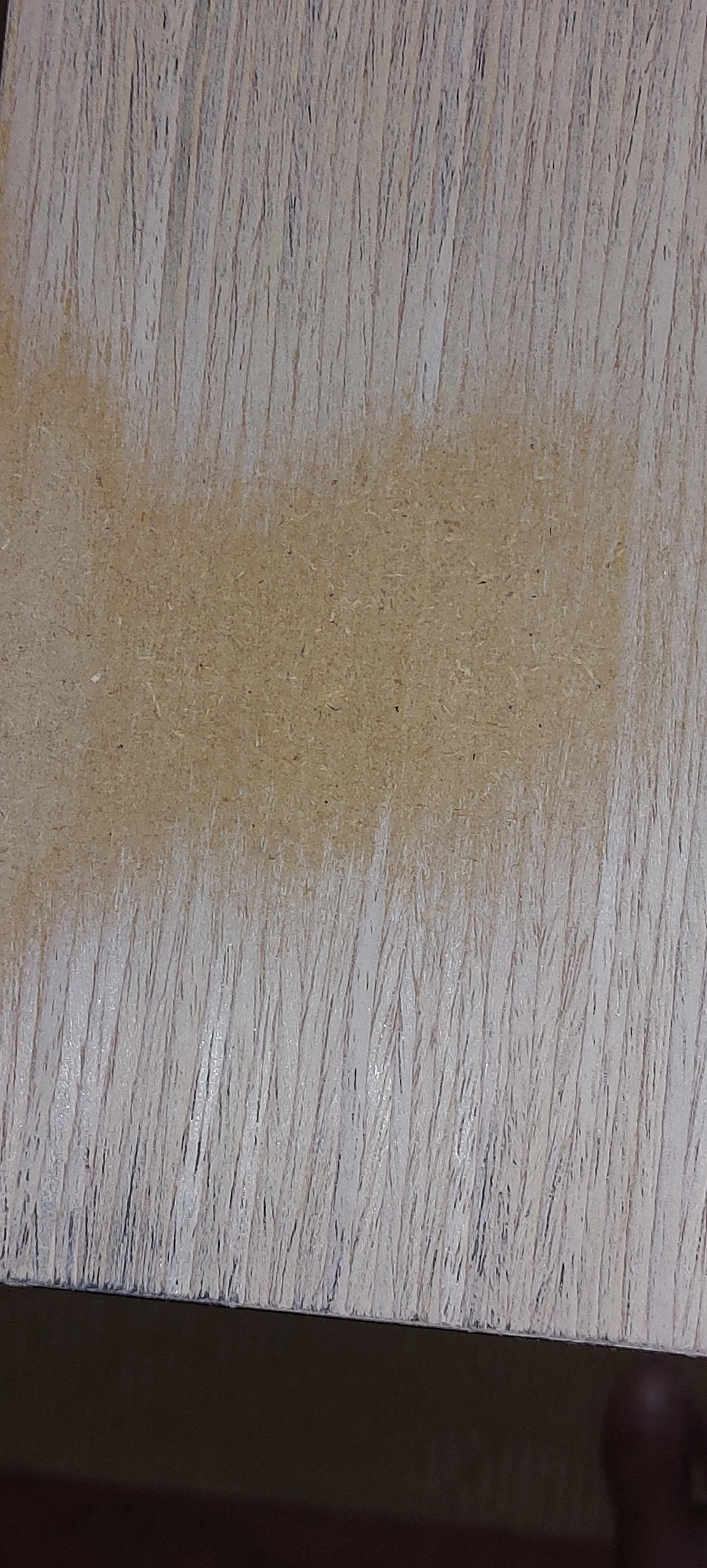 Compañerooo…, esa mesa es dm chapado en melamina, te has comido la melamina lijando y lo que se ve es el dm.