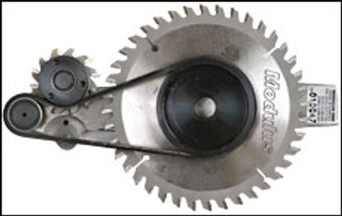 gracias Jaru por la información, mirando la máquina hay algo q no me cuadra, es q por lo q veo el eje del incisor lleva una polea plana y en el eje de la sierra también hay otra polea de ese tipo, pero si le pongo una correa ahí entonces el incisor giraría en el mismo sentido q la sierra.