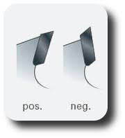 Los discos con ángulo de ataque negativo dan mejor calidad de corte en los cortes transversales. La geometría de los dientes también influye en la calidad del corte dependiendo del número de dientes del disco y del material a cortar. No es lo mismo cortar contrachapado que melamina de doble cara.