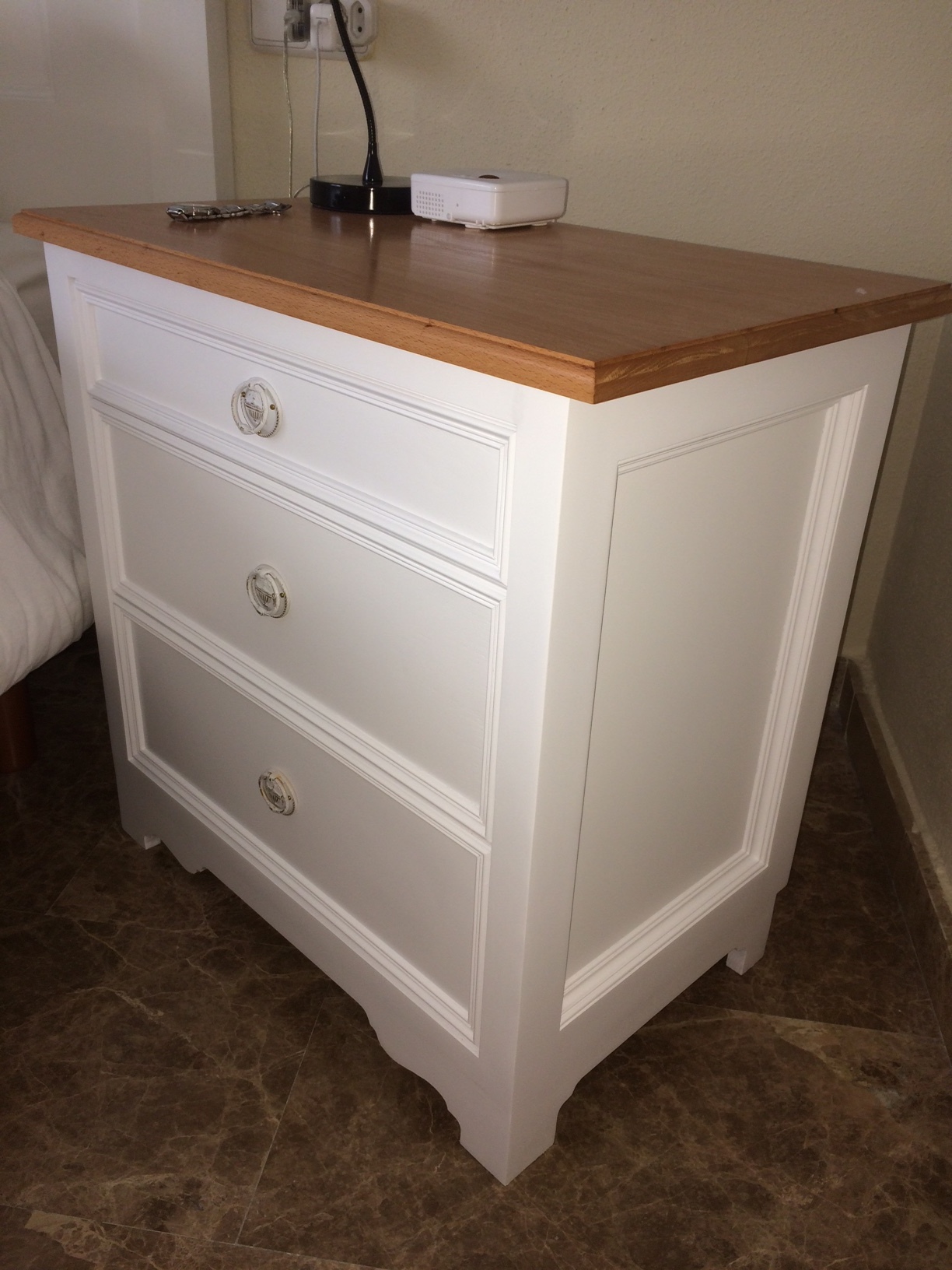 EDIT: y que conste que acabo de terminar unas mesillas para mi dormitorio que, en mi opinión, están muy bien con la máquina y experiencia que tengo (casi ninguna y todo autodidacta). El tablero superior lo he hecho yo con tablas de haya encoladas, luego fresado y acabado con danish oil. Se pueden hacer cosas bonitas pero cuesta mucho más trabajo que el que tiene máquinas mejores.