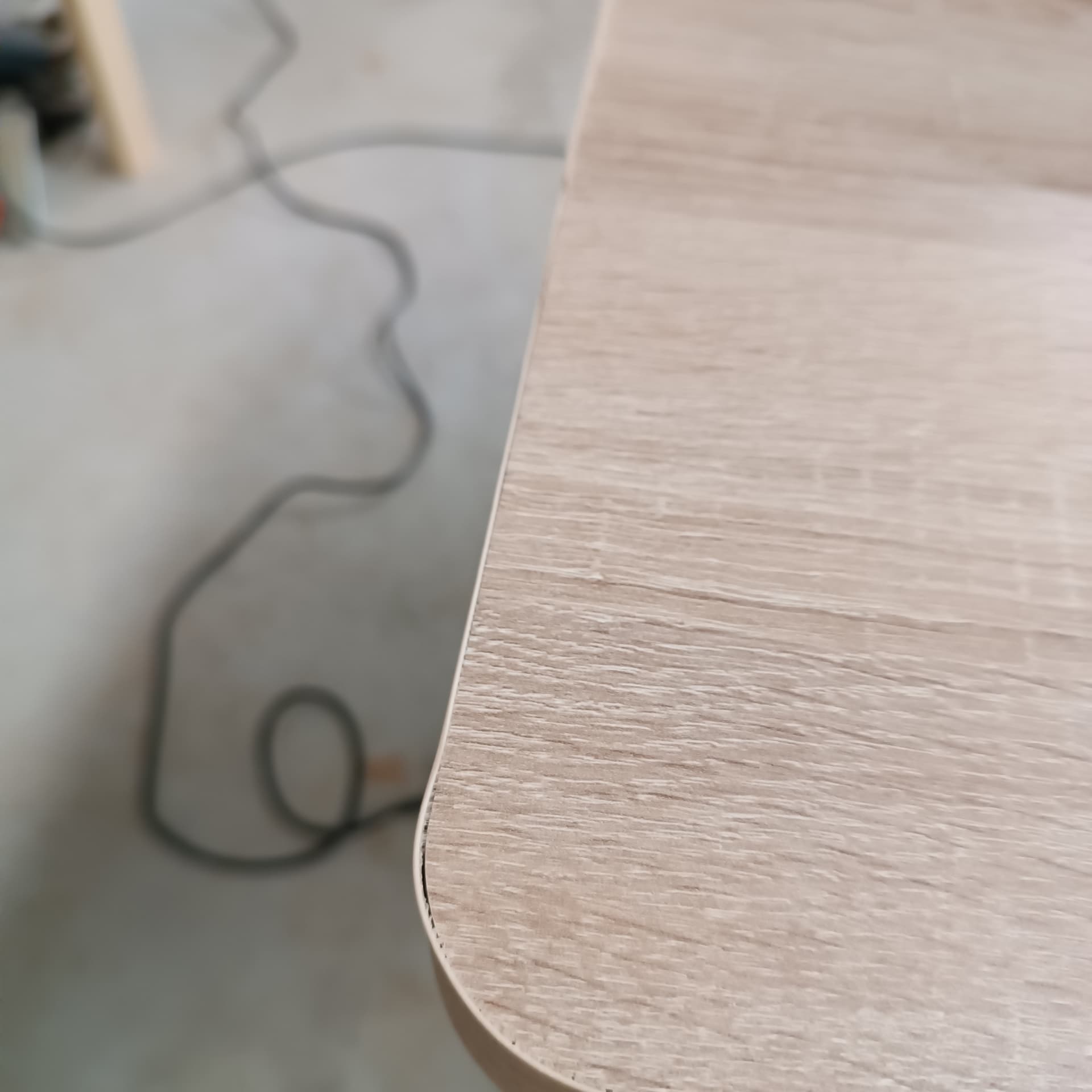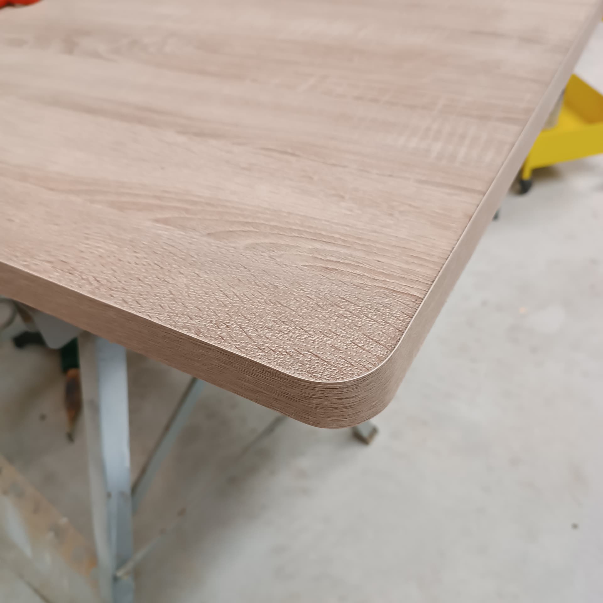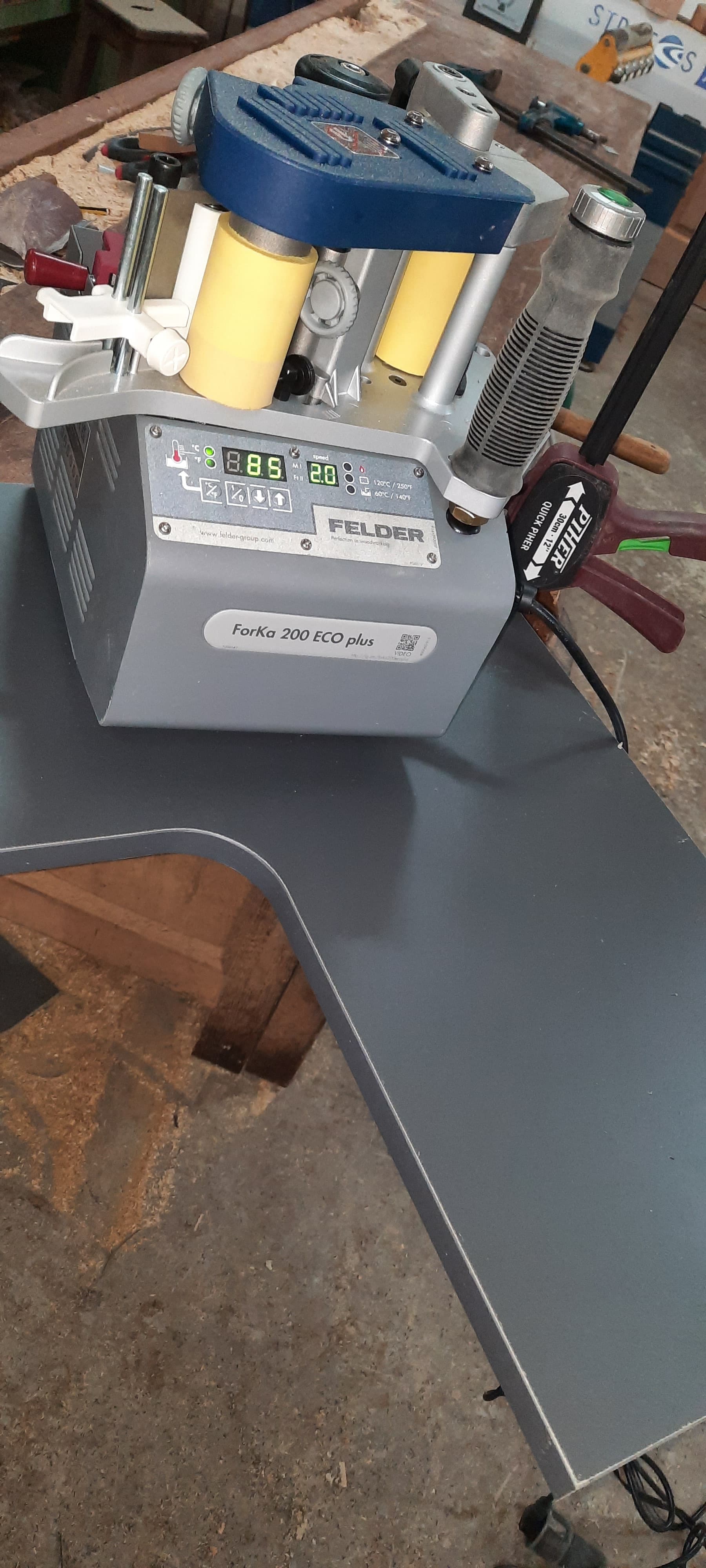 Yo me hice la mesa, para cantear en recto,.incluso le hice un canal para que el sobrante del canto tenga espacio.