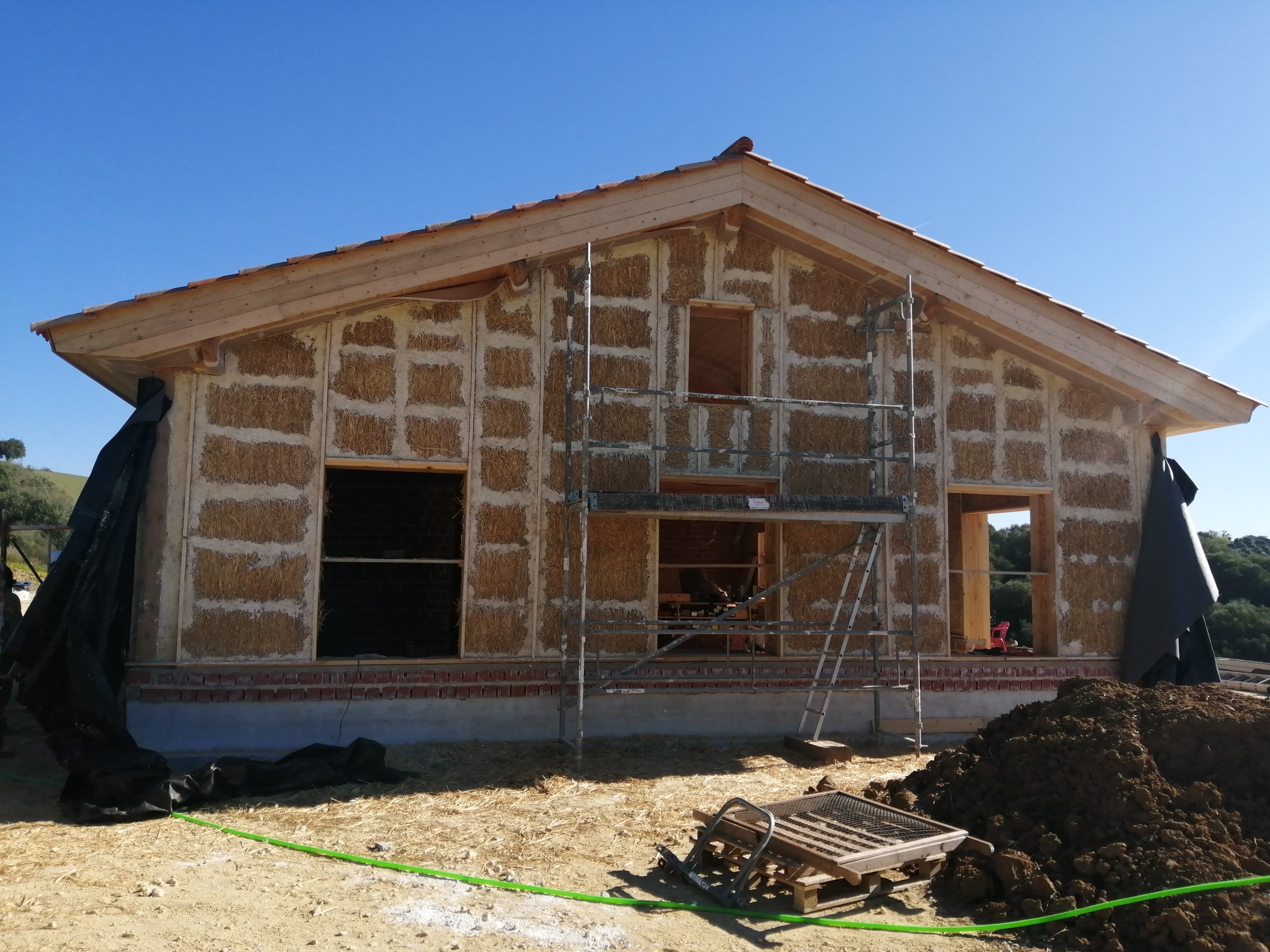Aquí te muestro una obra en la que estoy participando en Arcos de la Frontera (Cádiz) , la estructura está hecha íntegramente en madera maciza de pino, uniones carpinterías, clavijas de madera, no hay tornillos, muros de balas de paja, una biocasa, para toda la vida!!