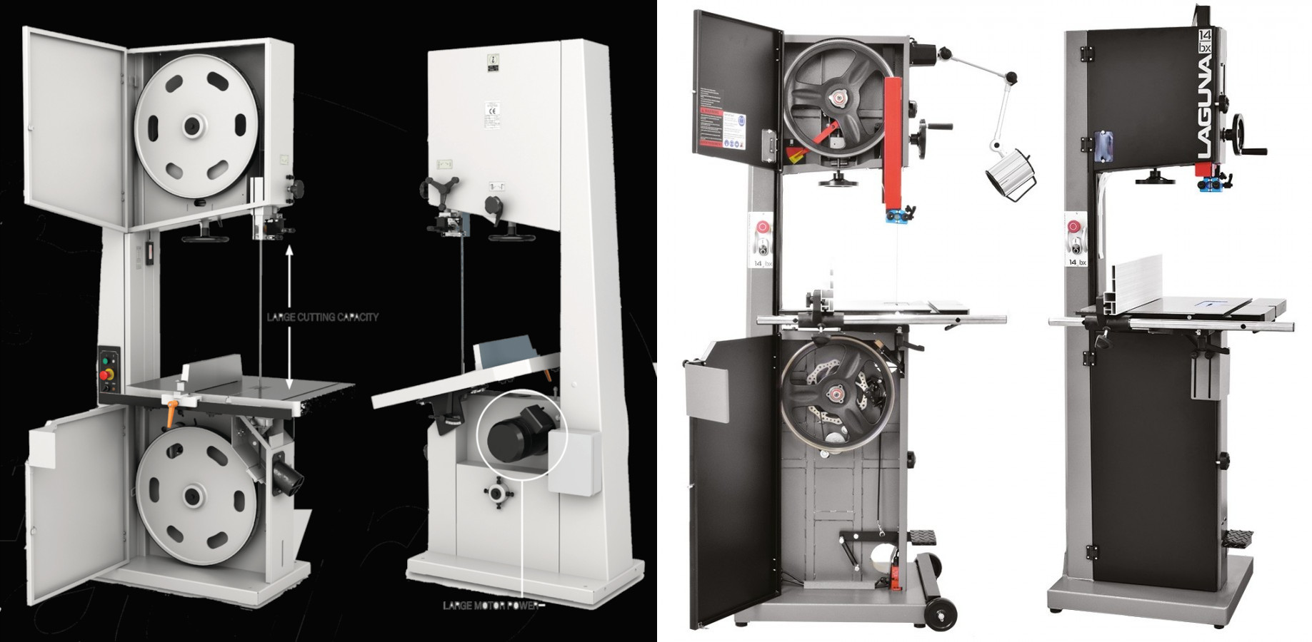 Hola, quisiera hacer una consulta para quienes tengan experiencia con estas dos marcas. Estoy por cambiar mi sierra de cinta JET 14Q por una con mayor altura de corte, necesito abrir tablas de hasta 34cm pero sin renunciar a una máquina pequeña (volantes de hasta 400mm).