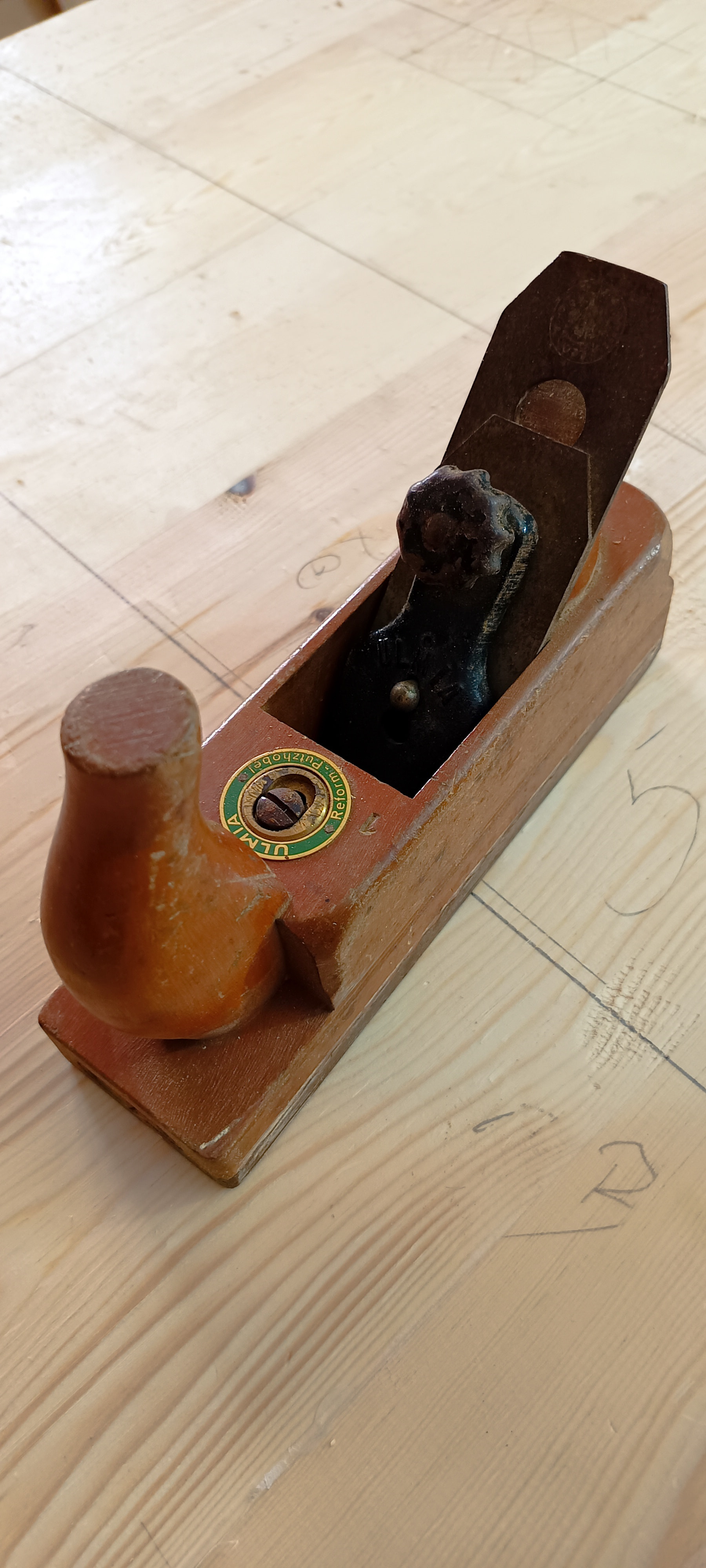 Respecto al Ulmia, me refería a esos 3 tornillos que se ven en la parte frontal, debajo de la empuñadura. Acabo de fijarme que en la foto que he colgado no se ve esta parte, pero el cepillo que he comprado no los tiene, tampoco conozco su función.
