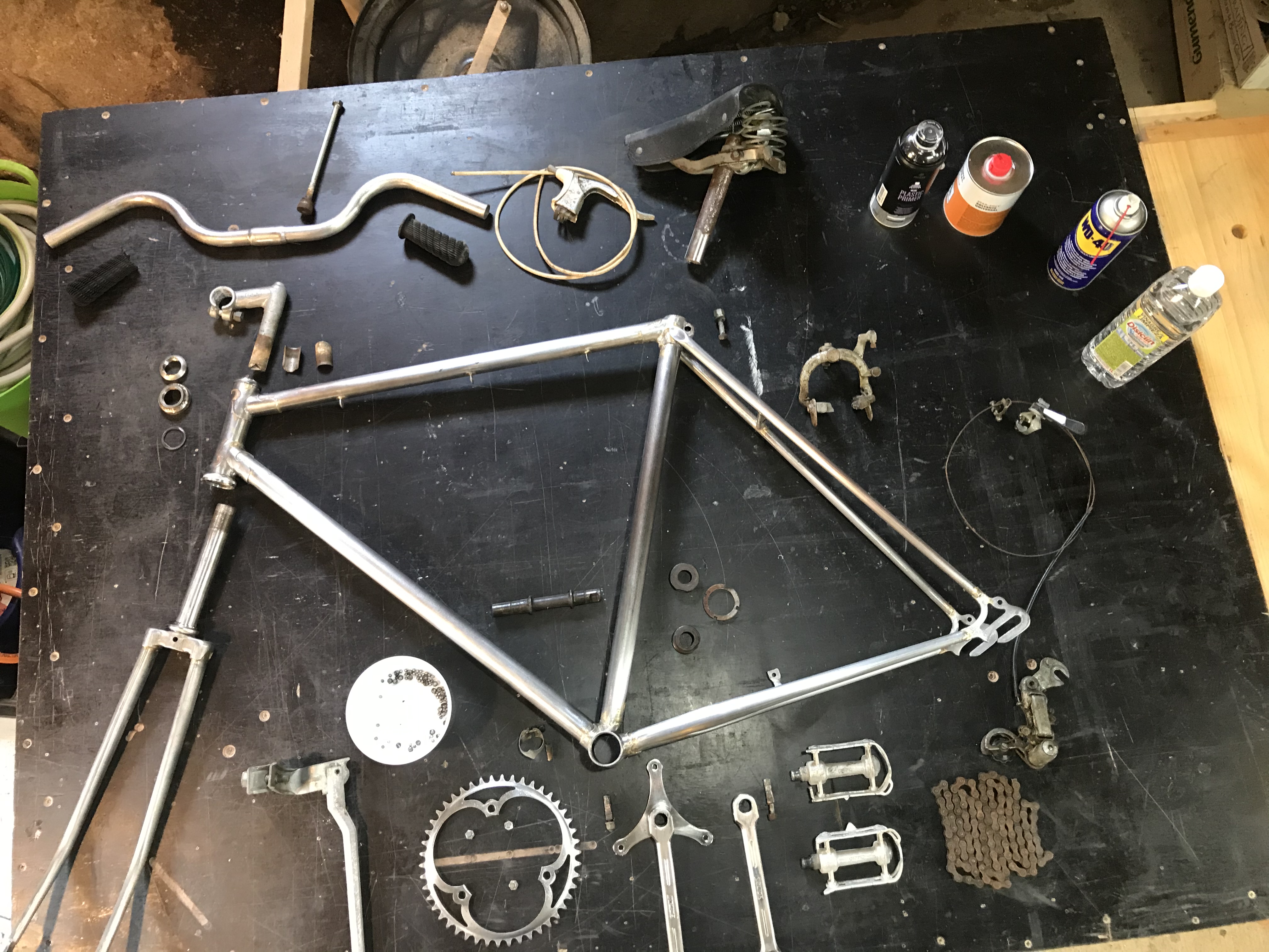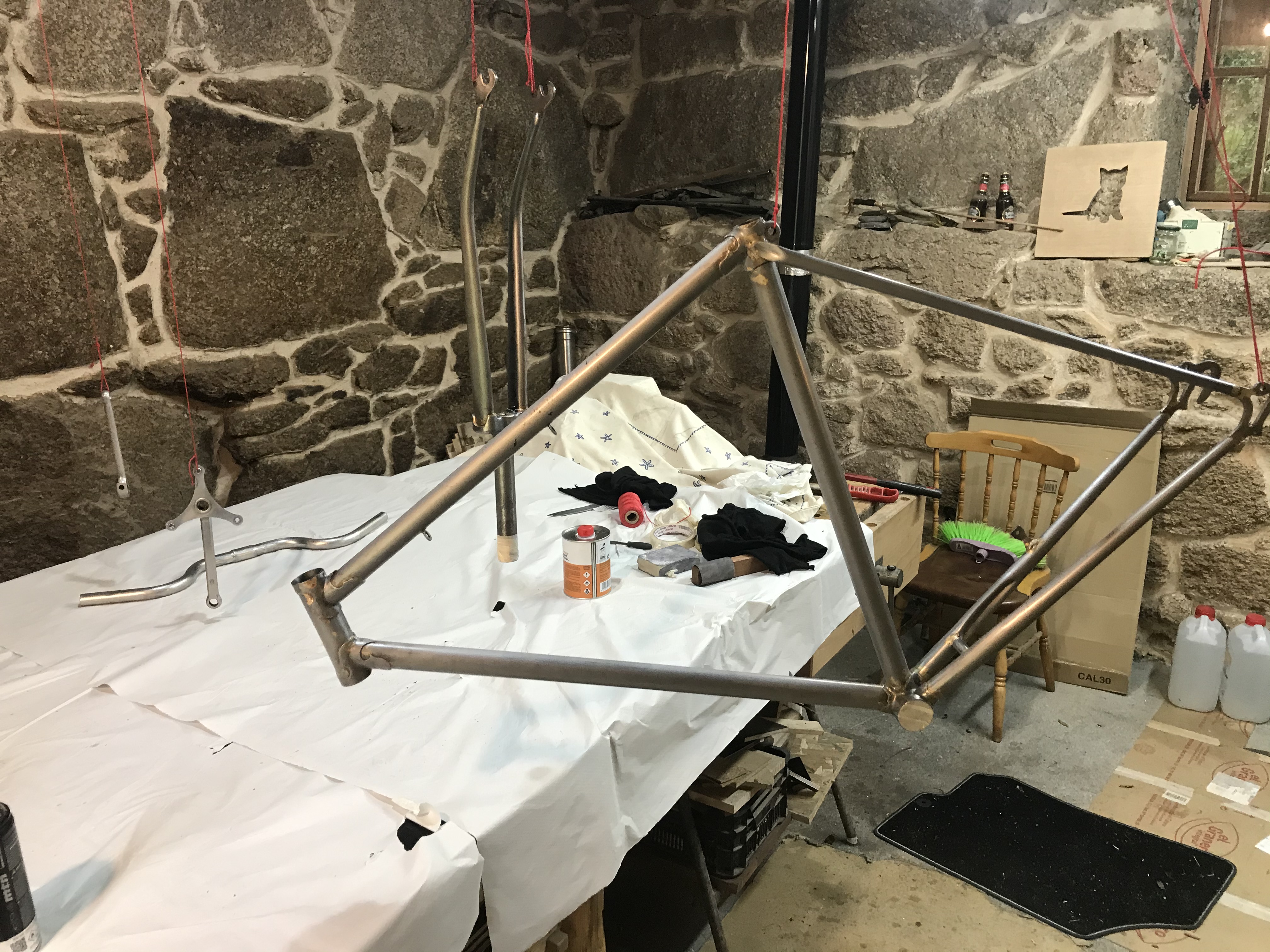 El metal del cuadro lo he limpiado completamente y ya tiene dos manos de imprimación.