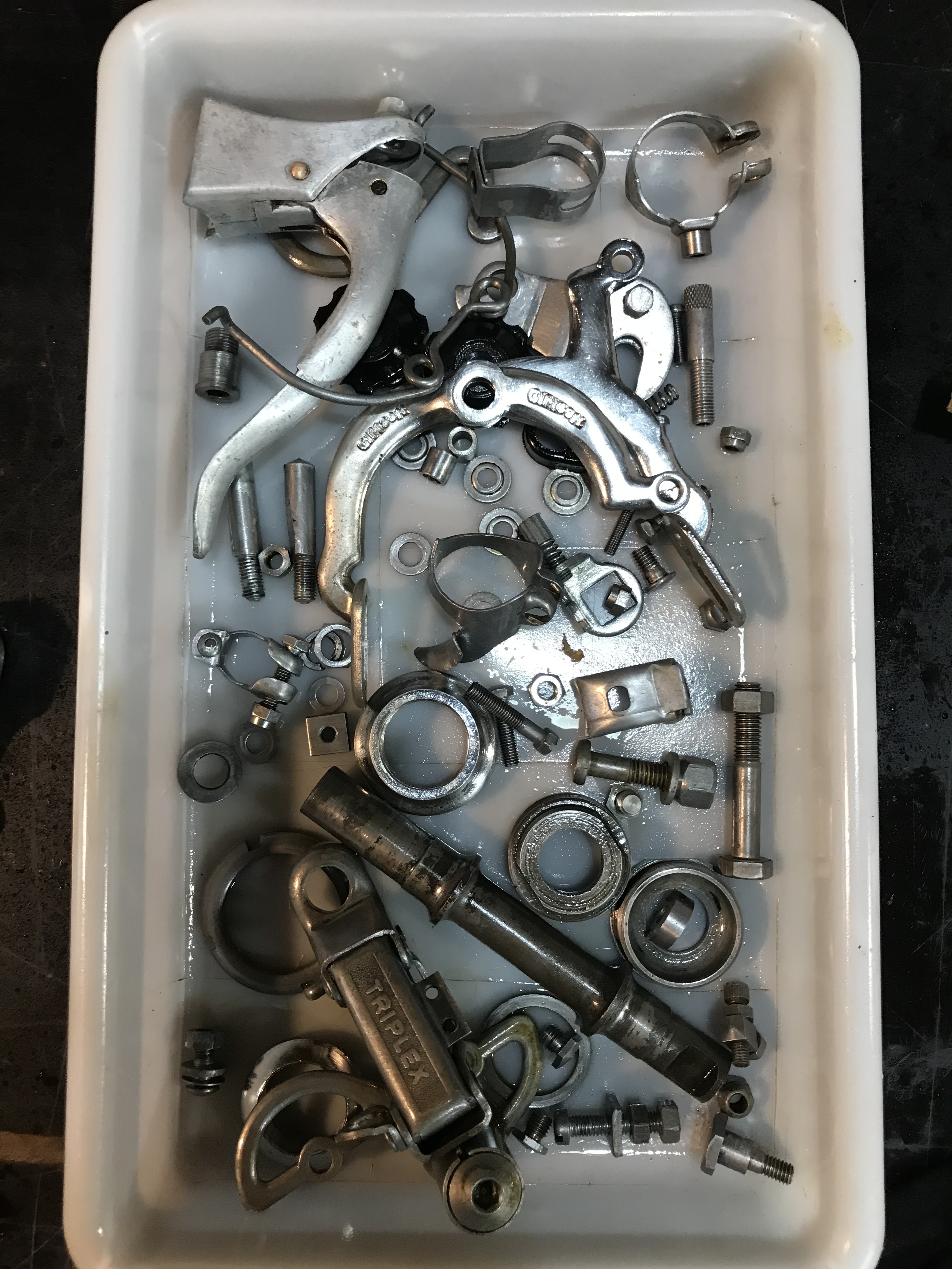 Esa biela con una araña de solo tres tornillos de sujeción, ese desbiador trasero Triplex, tubos de acero unidos con soldadura y racores…