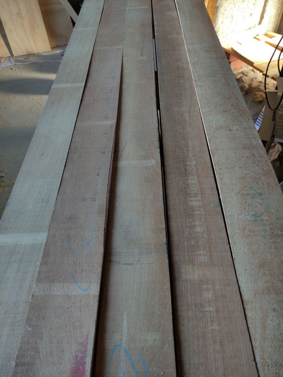 Sobre las tablas sí quiero unirlas tal cual están en la foto , es decir de canto. Intentare empatar los cantos como hacen el video pero la cosa es que no tengo sierra de mesa tan grande, lo voy a intentar con la sierra circular de mano.