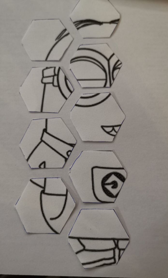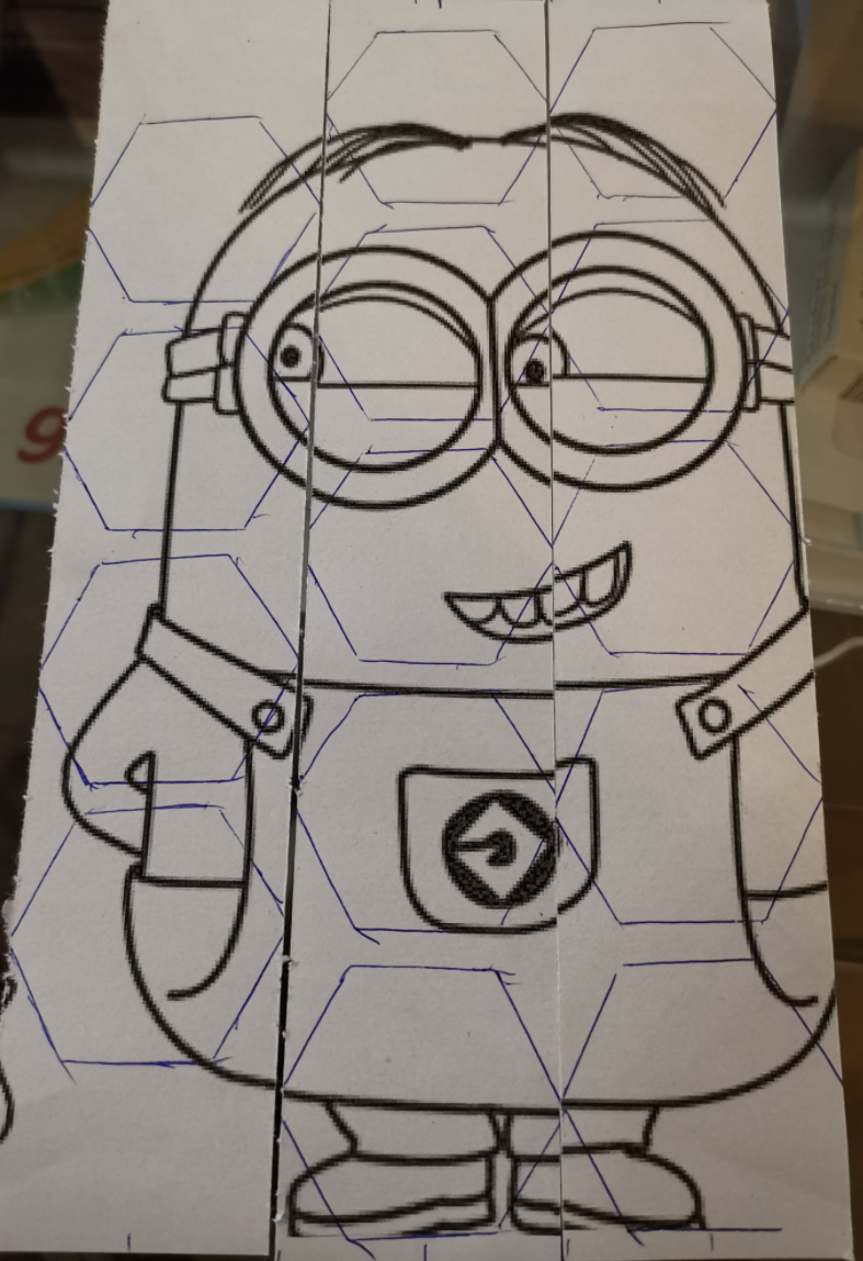 Bueno, ademas de que el montaje final estaria mal hecho, pues los vertices de los hexagonos tendrian que estar en la vertical, y el problema ahi no se notaria mucho, dado que son 4 lineas, pero en una madera con veta, el dibujo se veria desplazado, pues al fin y al cabo estas desplazandolo
