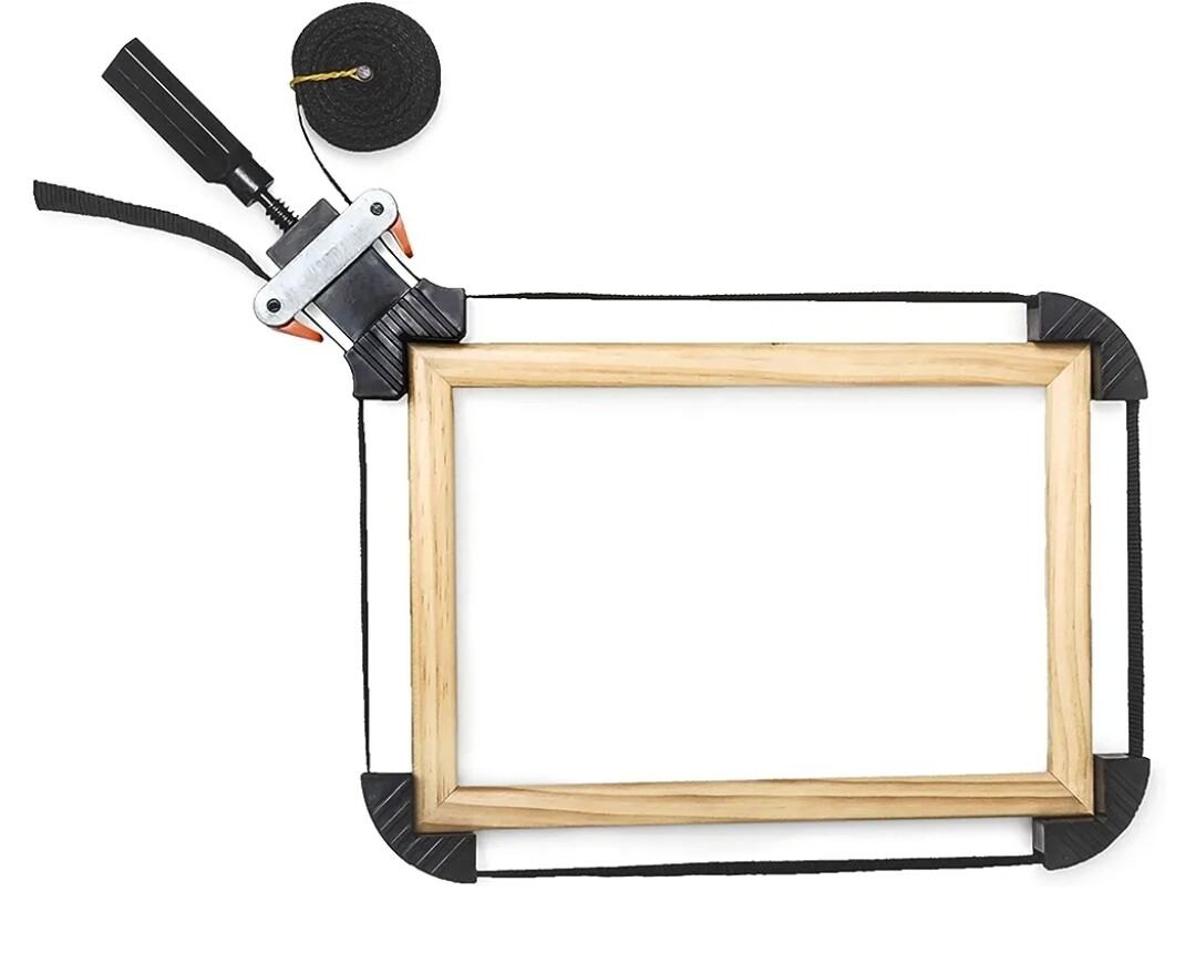 Hay que fijar dos tablitas a 90° cerrado a un tablero, donde apollar el marco y tener una referencia antes de montar.