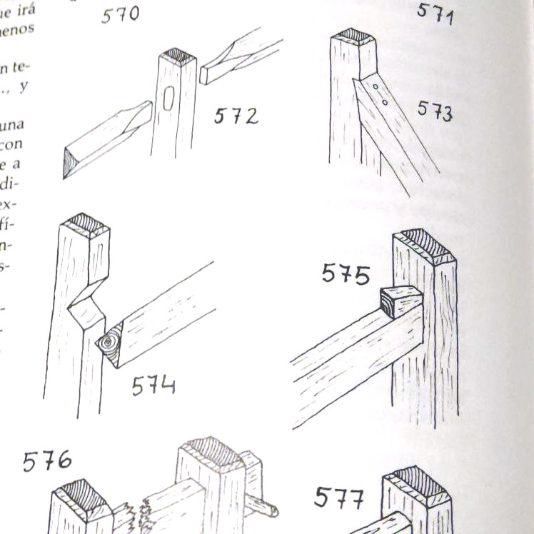 Aquí envío algunos encastres que aparecen en el fabuloso libro de Ignacio Avella “El Hombre y La Madera” que, además de ser recursos relativamente simples, representan ejemplos de carpintería ibérica