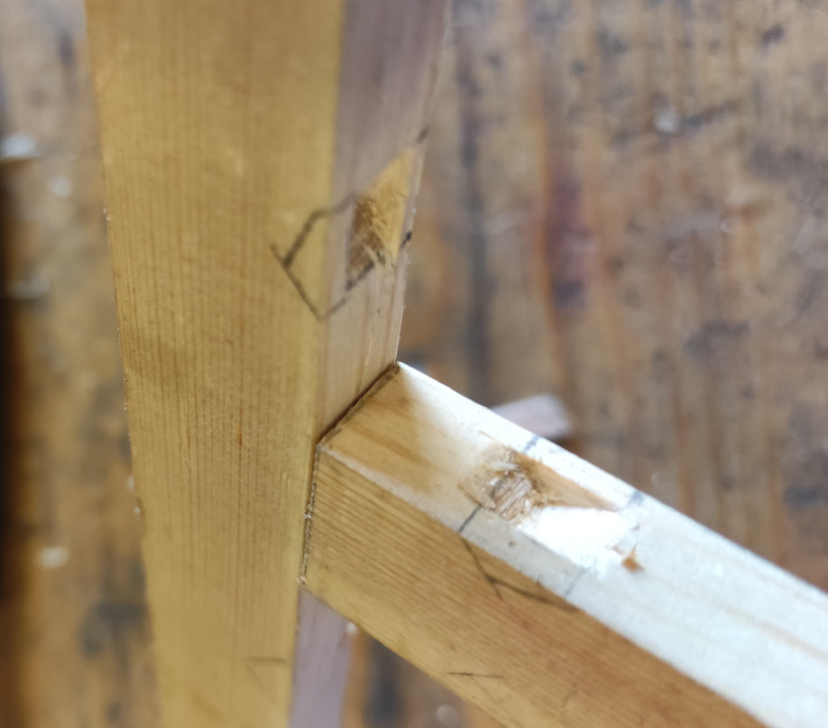 Estos dos son los que llevan las cerchas que he desmontado, pero pensaba que para los pilares al ser los tornapuntas mucho mas cortos habria alguna encaje diferente.