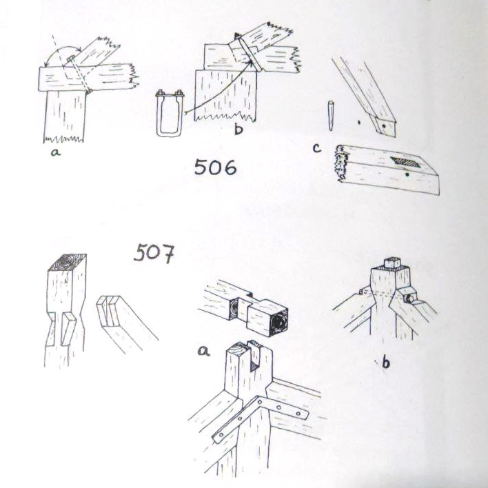 Creo que ya lo tengo claro, como que los pilares serán troncos de arboles es decir redondos creo que el encaje de la figura B o el 573 al revés, es muy conveniente( que es el mismo que mostro @chuf i @Francis10 i el mismo que se usa en el tornapuntas de las cerchas, para facilitar los encajes tendre un tornapuntas a modo de plantilla cortado a 45º en los dos extremos para presentarlos sobre los pilares y debajo de la viga, para marcar donde van las cajas, levantar la viga y poner el tornapuntas como el presentado pero con espigas.