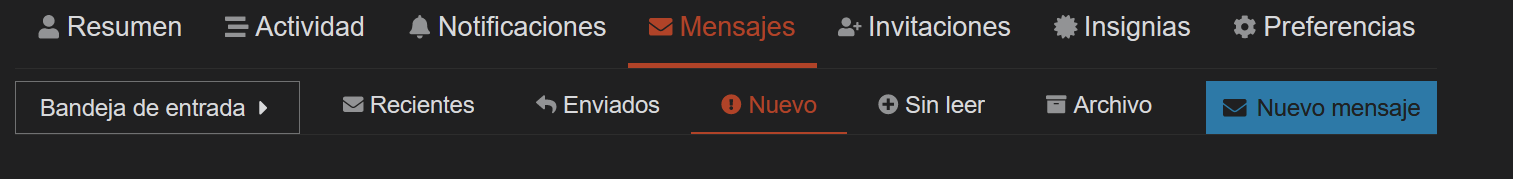 pues no me sale el sobre de marras, todo lo demás si, pero el sobre nanai… me da que estoy restringido por algo, porque segun la ayuda la insignia de usuario basico te da acceso a los mensajes privados, pero no tenga nada relacionado con mensajeria… que cosa mas rara…