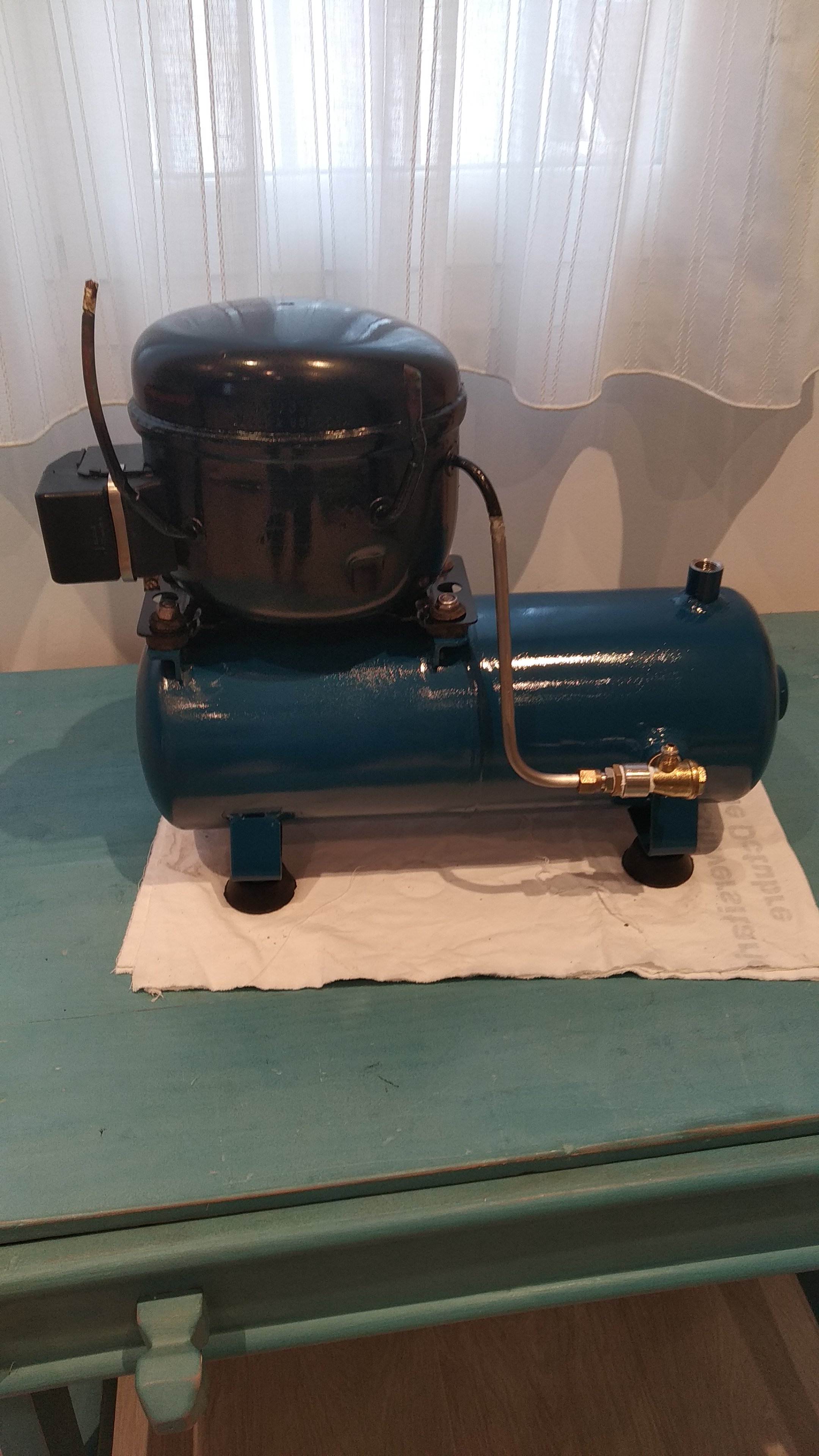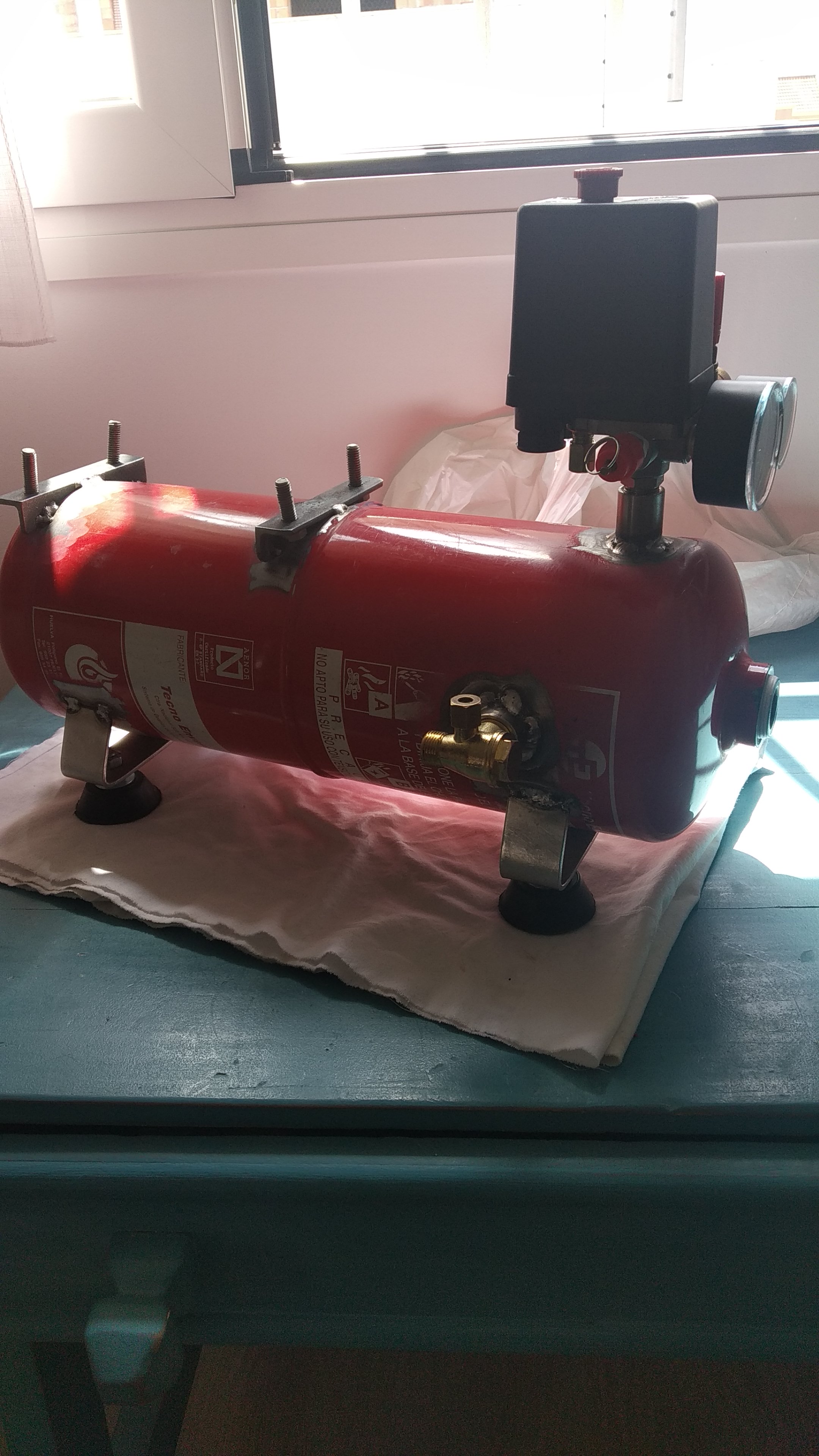 Aquí os muestro un pequeño compresor q me he fabricado con un extintor y el motor de un frigorífico, no vengo a enseñar nada nuevo, de esto hay mil tutoriales en internet, simplemente quería mostrarlo.