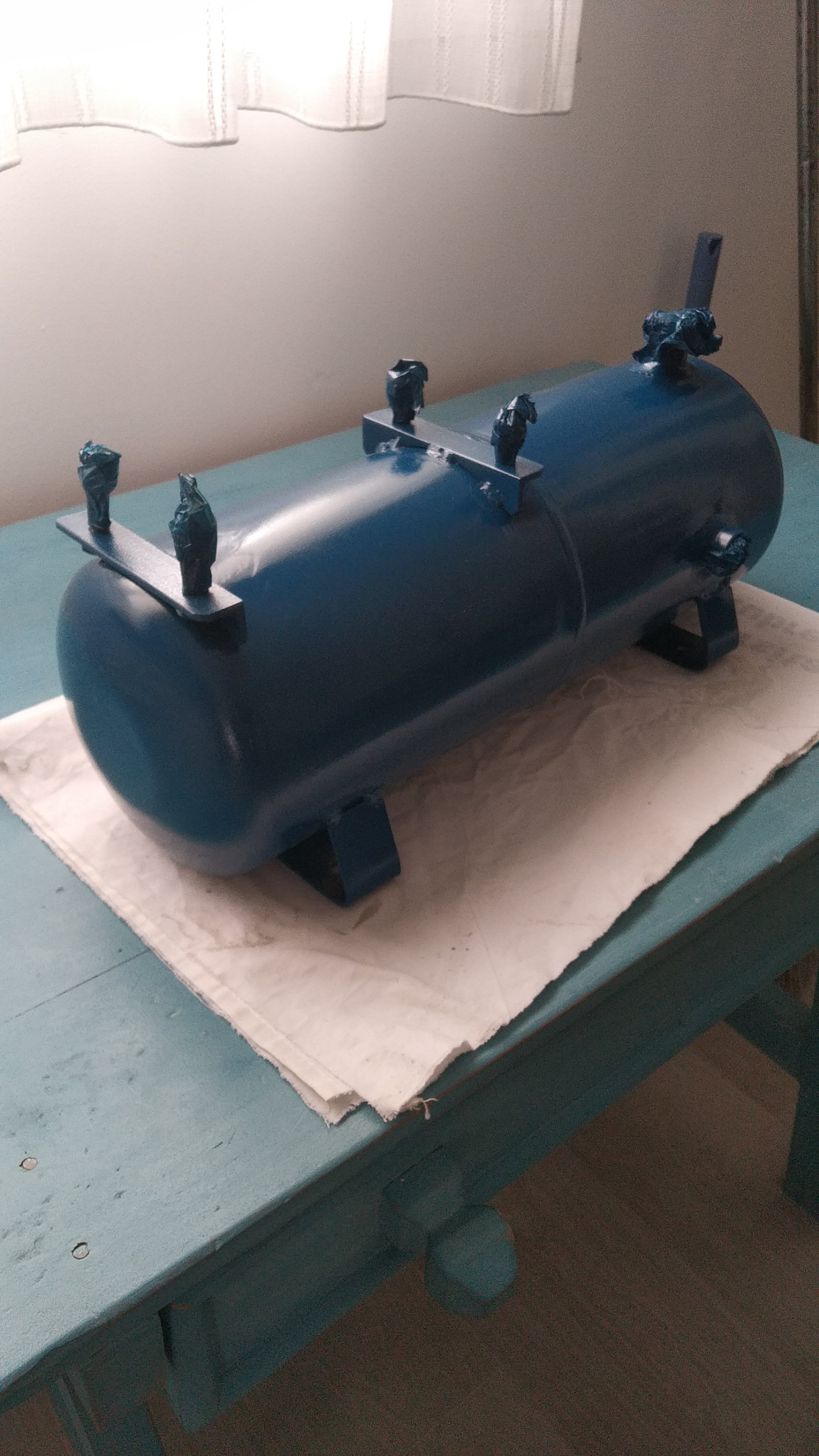 Yo hice uno hace años con un calderín de freno de un camión, y un compresor de un tanque refrigerador de leche, que son algo mayores, y estuve muy contento con él hasta que me lo pidieron prestado en una serrería y lo terminaron quemando porque lo tenían arrancado todo el día sin pararlo.