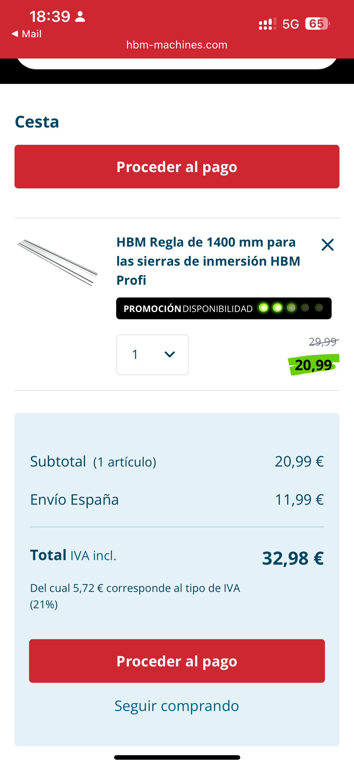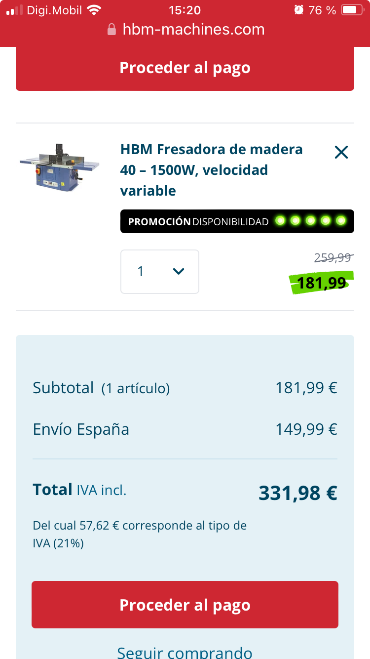Si la oferta es de HBM y es de la auténtica tiene filial en España: Tecnomaquinas. Aquí sí que compro hace años, muy buen servicio. Y sin esos portes locos.