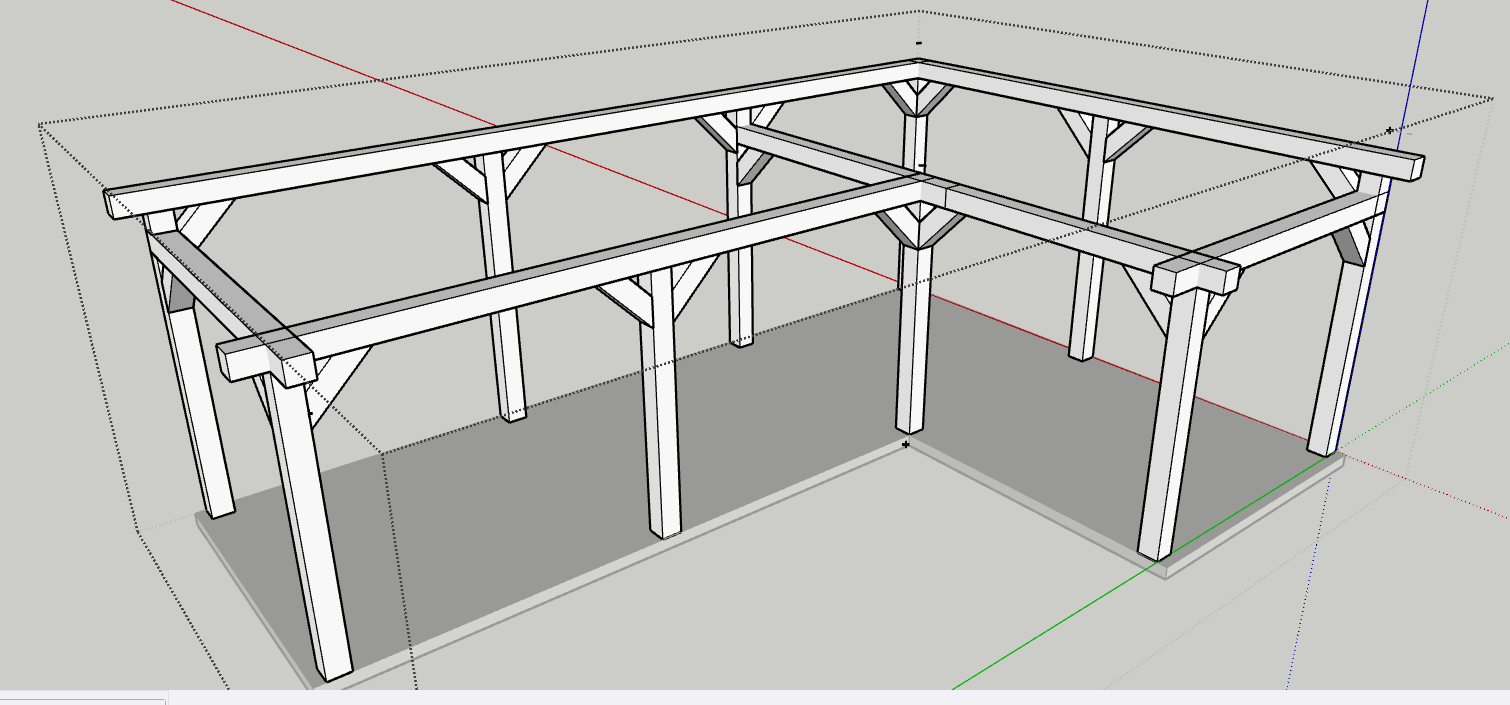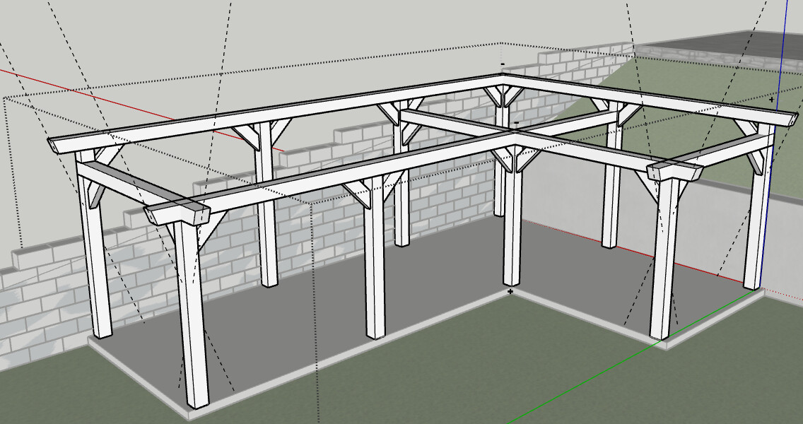 He pensado en hacer la estructura con pilares y vigas de 160x160 y el entramado que sujetará el techo serían de 60x120. En principio hasta ahí he llegado sin dudas y creo que las medidas y grosores escogidos están bien.
