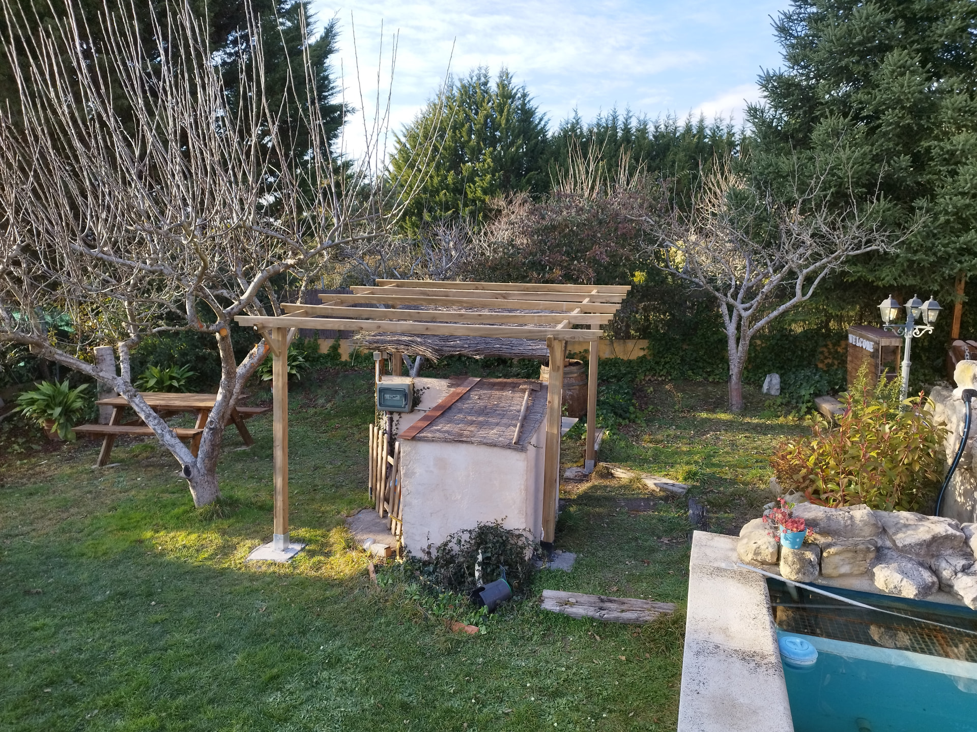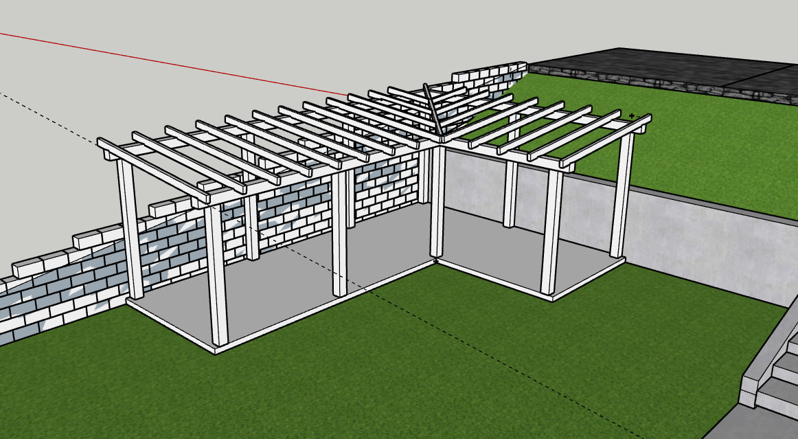 Buenas, quiero construir una pérgola/cenador, nunca he tenido muy clara la diferencia jejeje, en la parcela y he estado diseñando un poco. La estructura sería algo así: