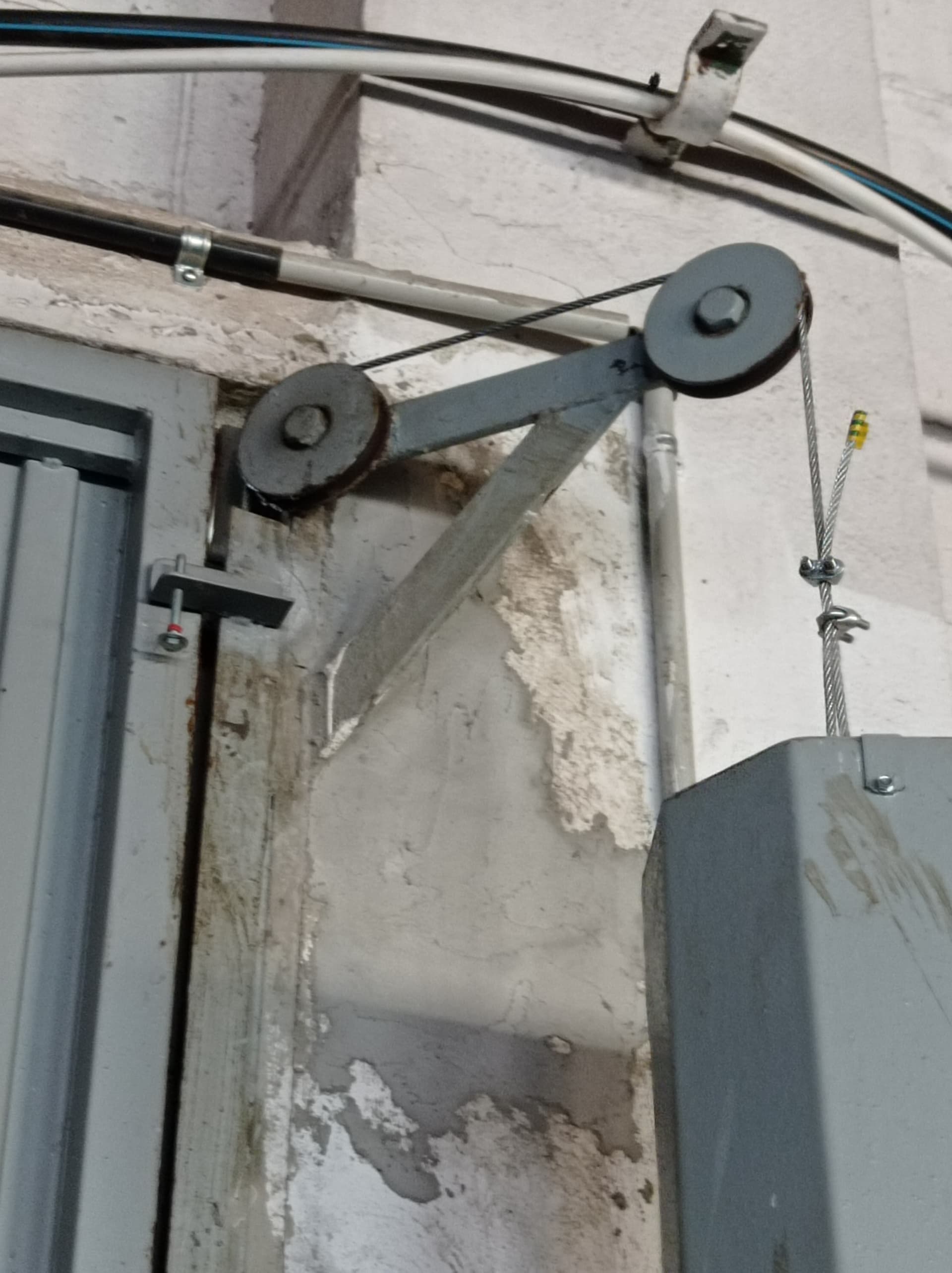 Otra vez se solto uno de los contrapesos y no paso nada porque la puerta queda descuadrada al tirar el peso opuesto que sigue intacto.