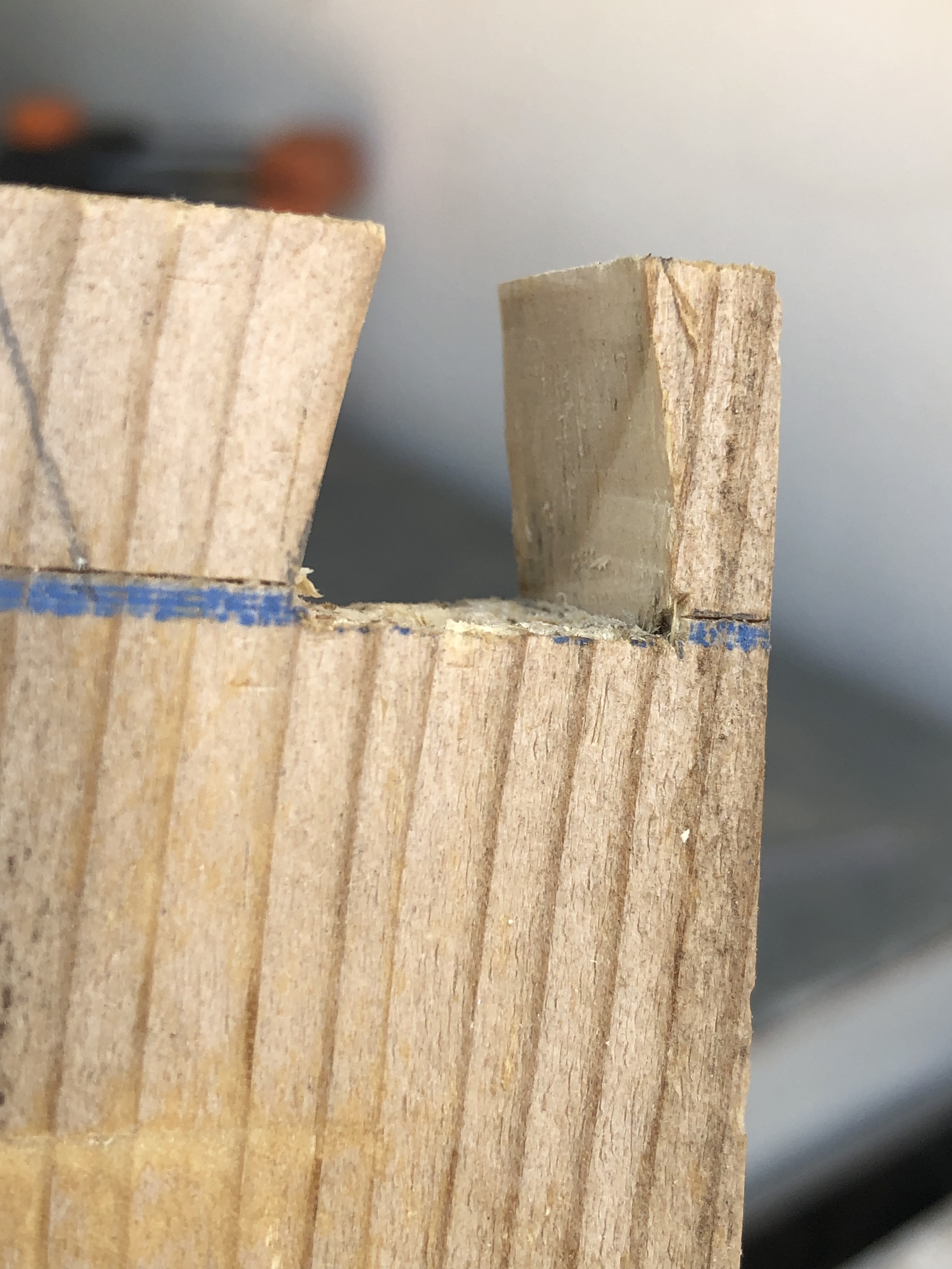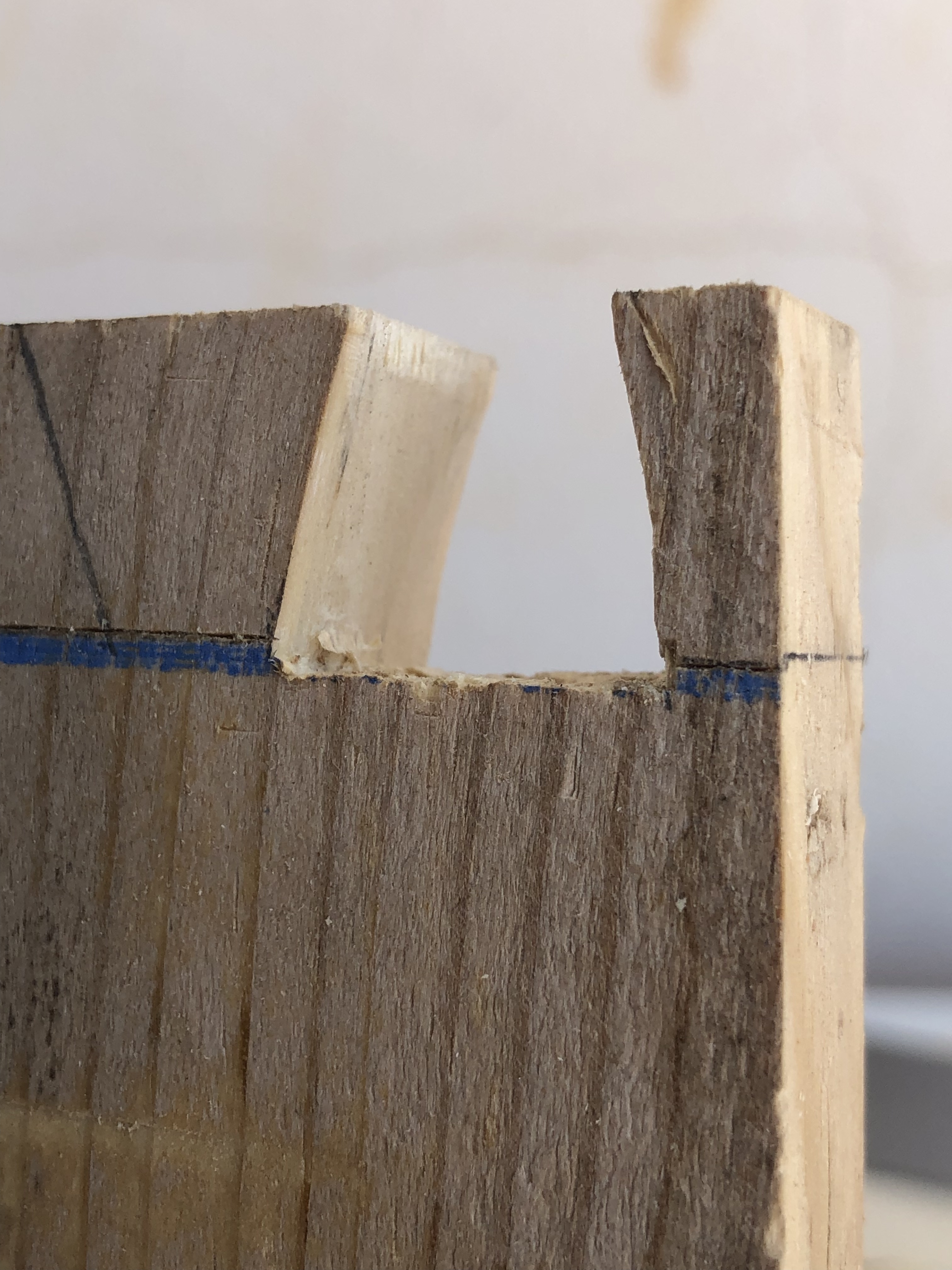 Volviendo a observar las fotos, creo que entrenarías en un entorno más realista si en lugar de cortar las colas en un canto lo hicieras en las testas, que es donde casi siempre se hacen las colas. El comportamiento de la madera es muy distinto entre canto y testa.