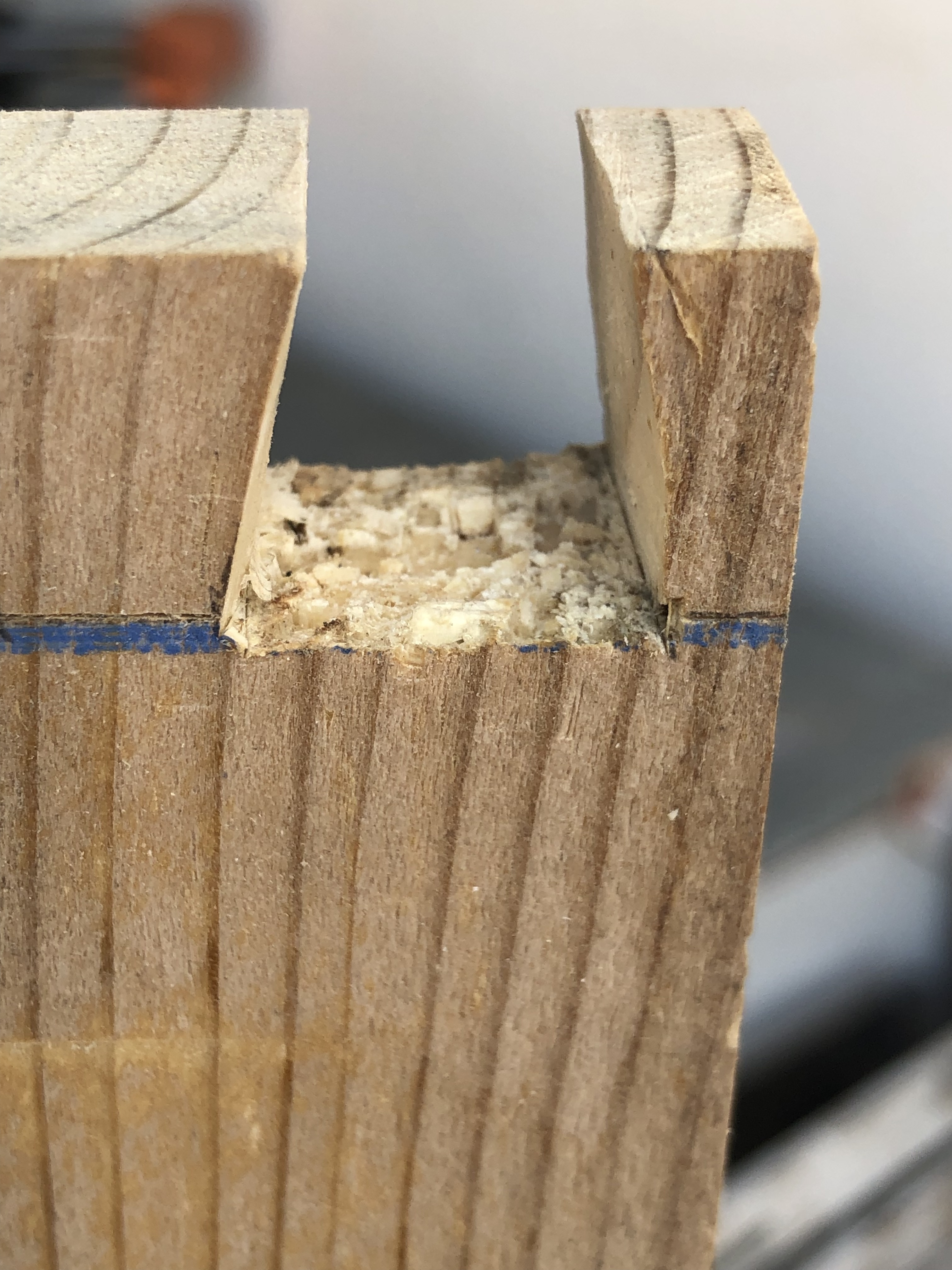 Como buen novato que soy me he puesto a practicar por primera vez cortes manuales para ensambles, y el resultado digamos que no me parece muy bueno, doy mas datos