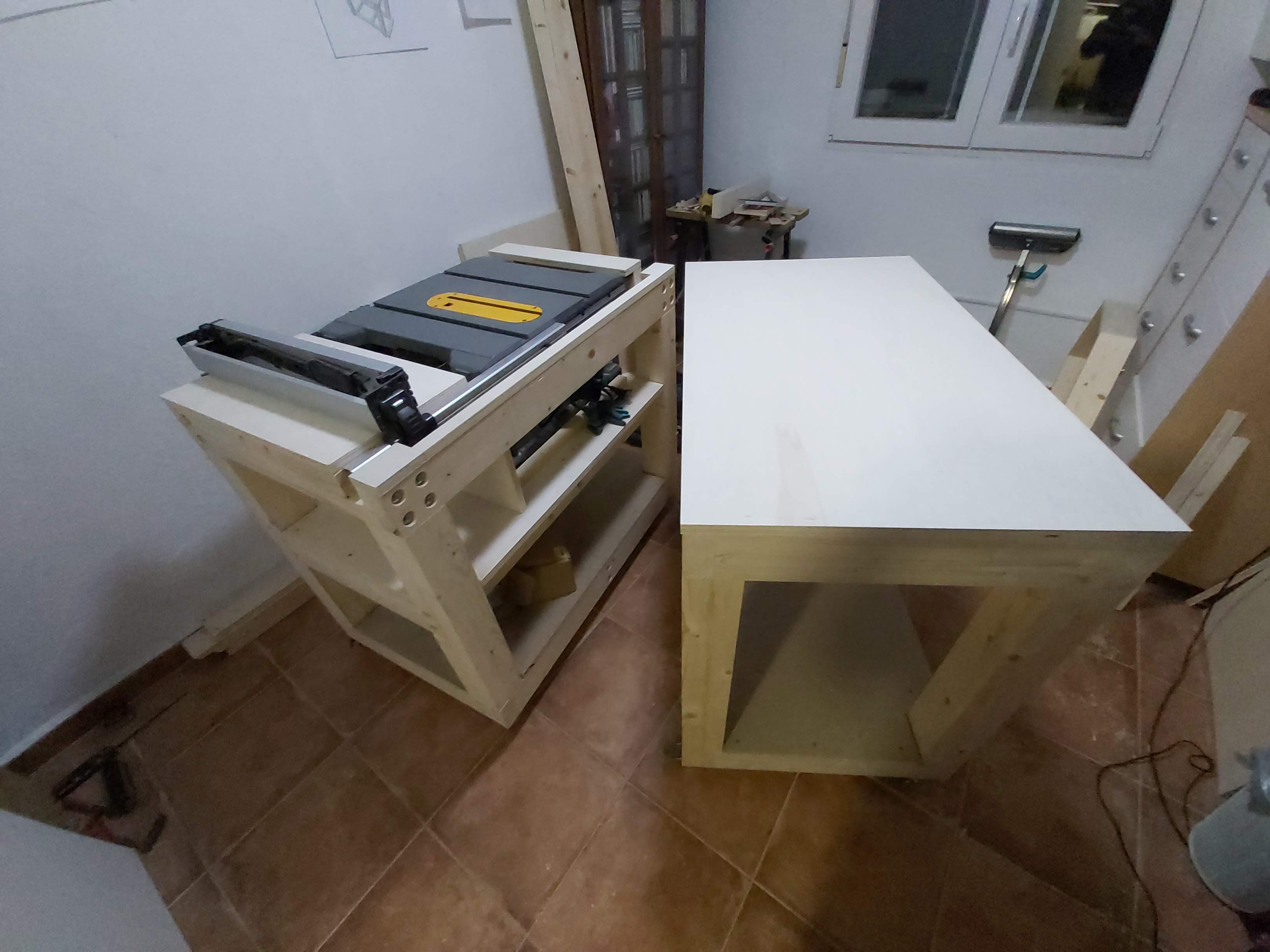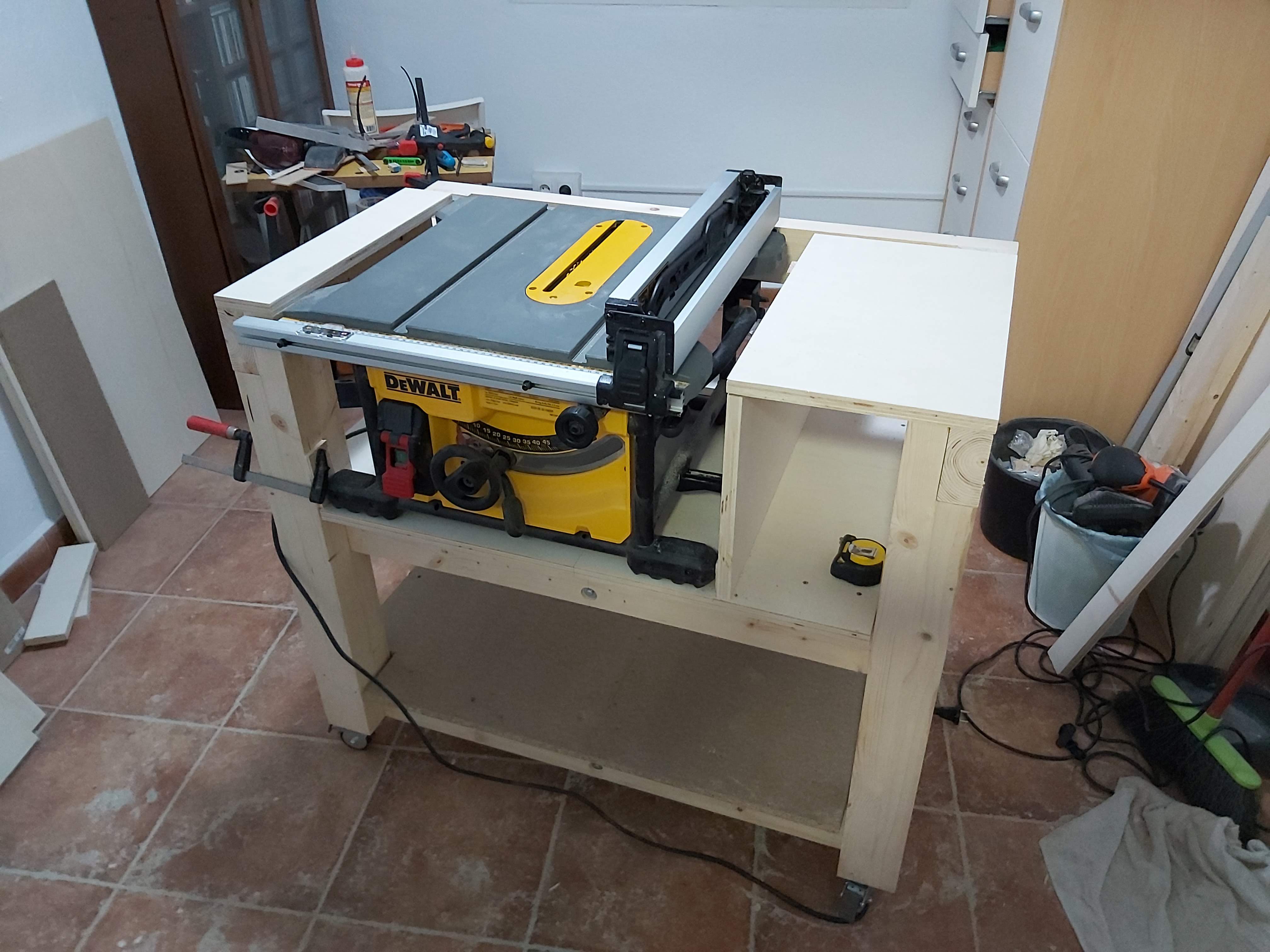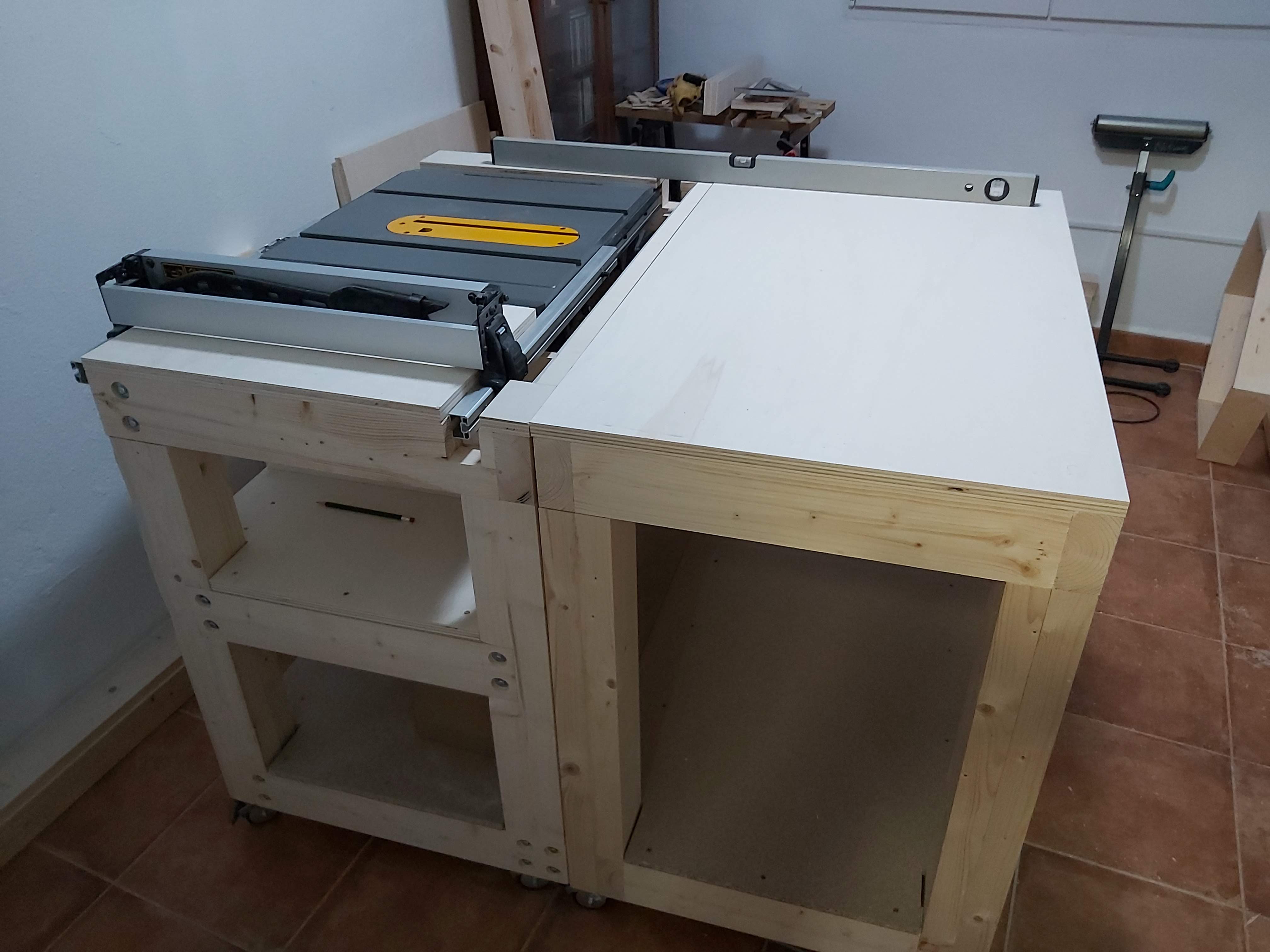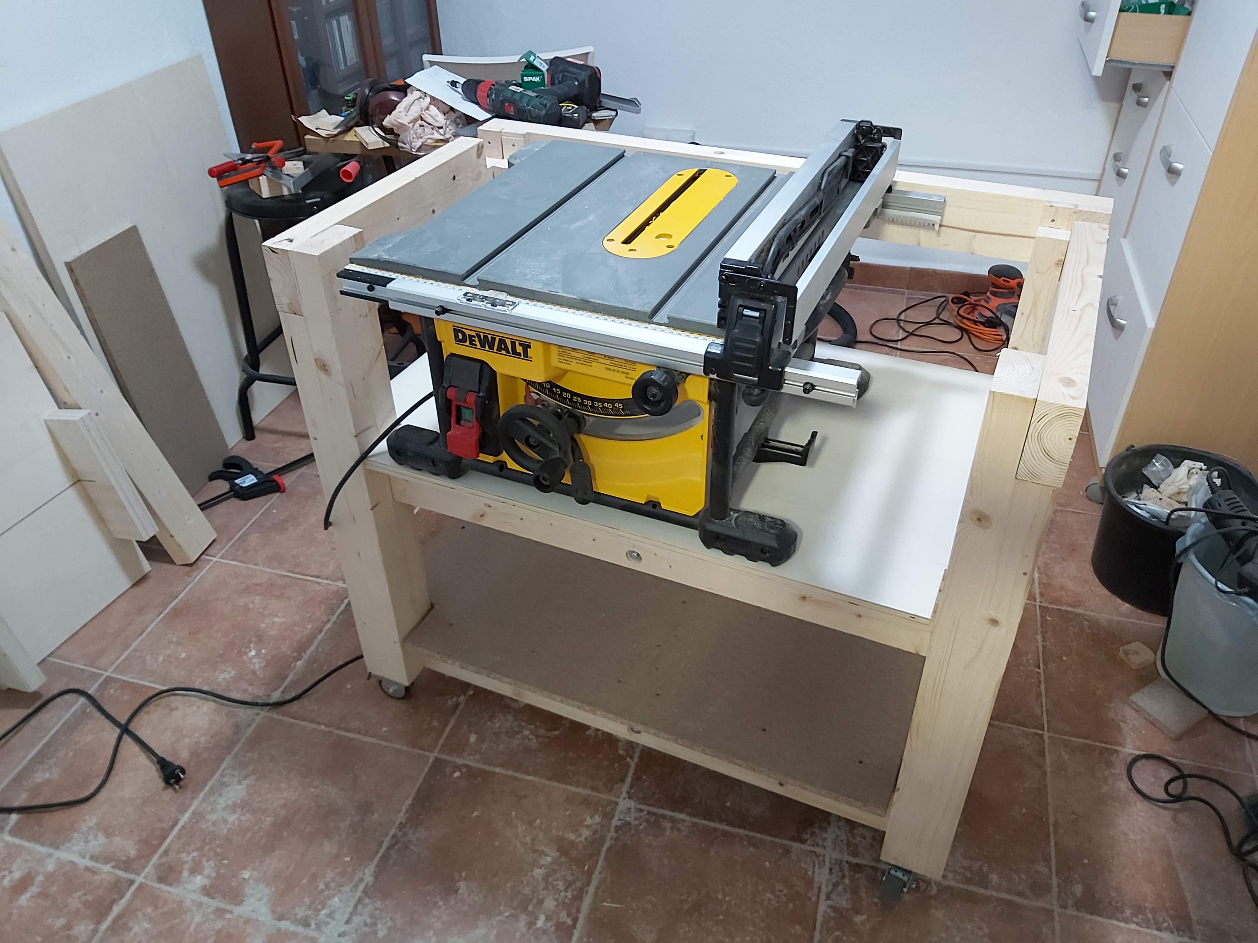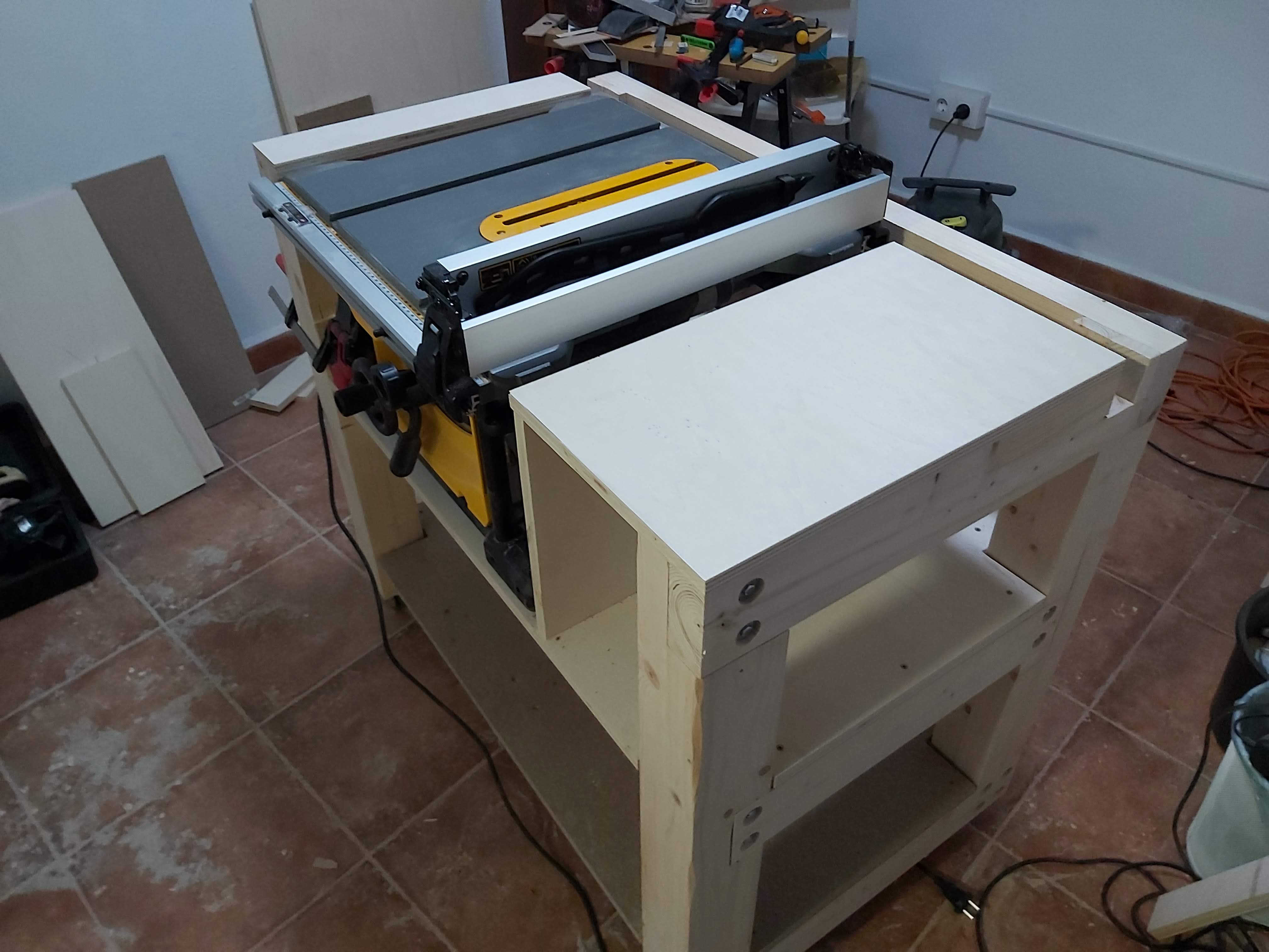 Primeras pruebas con la sierra de mesa dewalt 7485, ya las he echo haciendole una mesa, que voy a ir ampliando, os paso unas fotos.