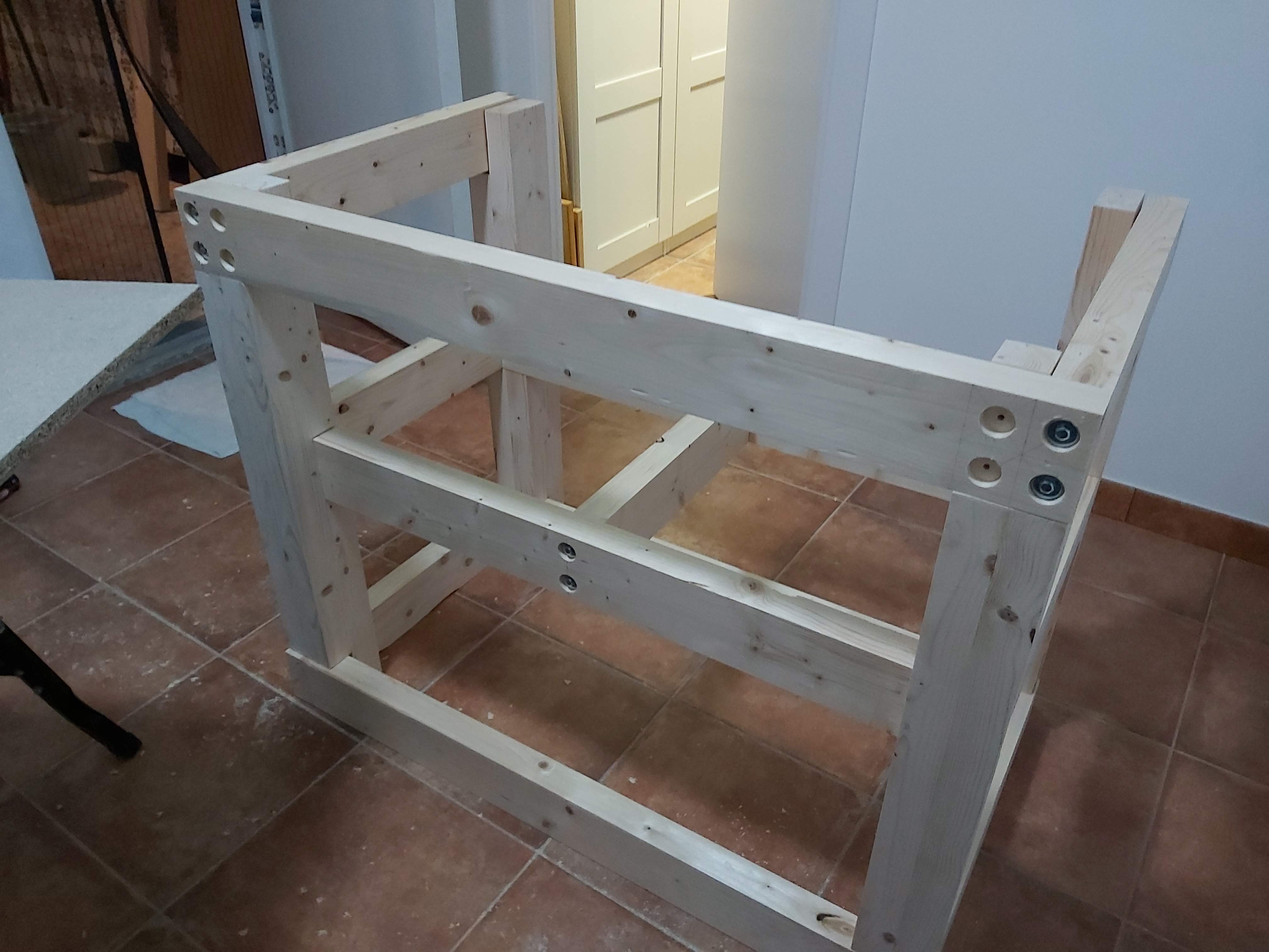 Pues por fin he terminado las mesas 1000x600x900. Como tengo un sitio pequeño una es para la máquina y otra para trabajar o para añadirla a la primera (modular, vamos…xd)