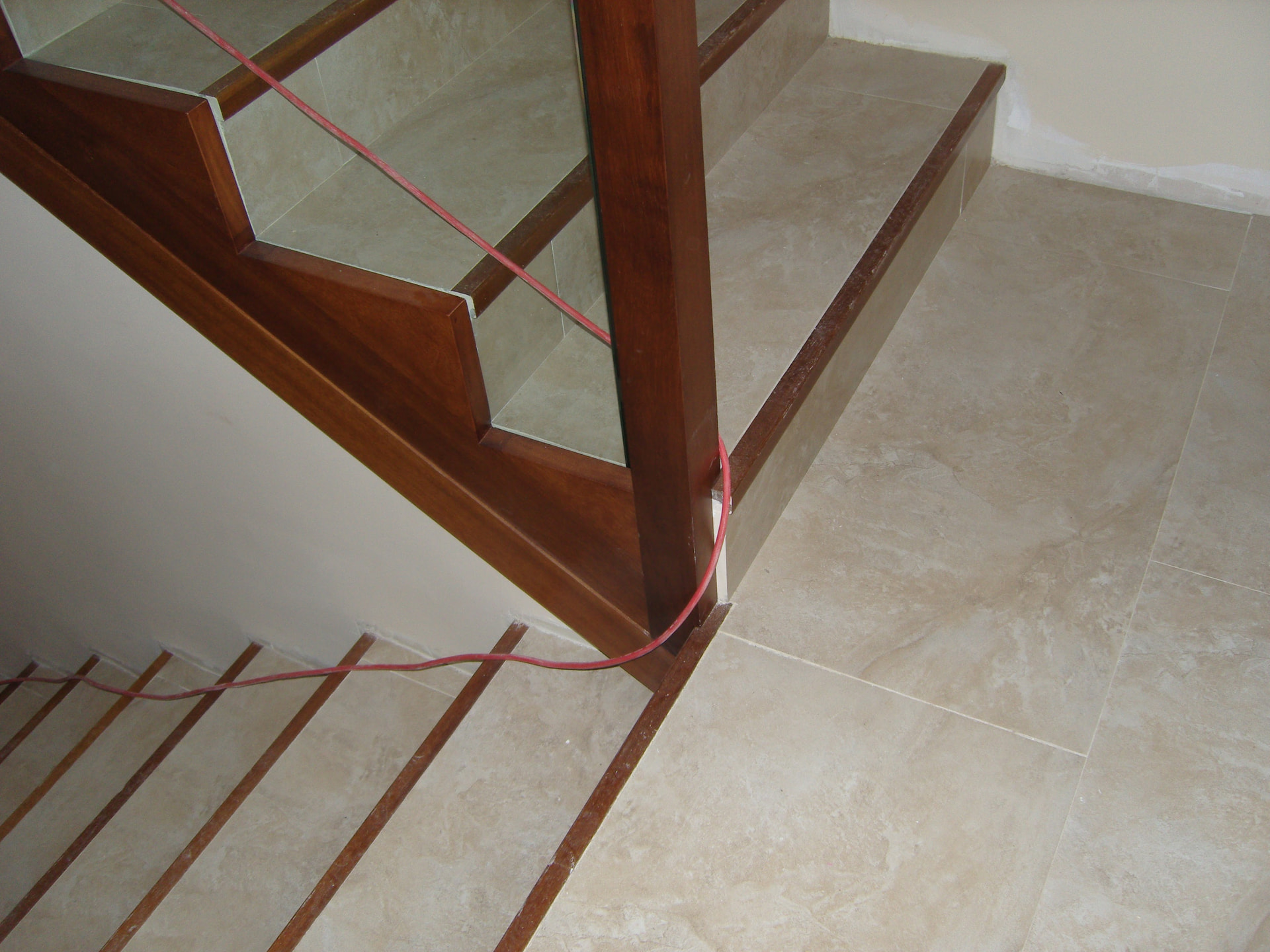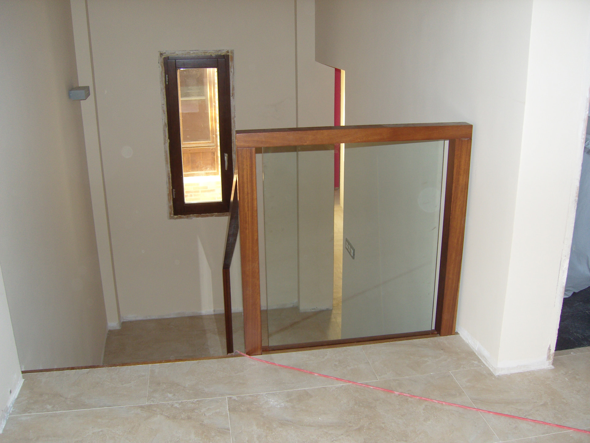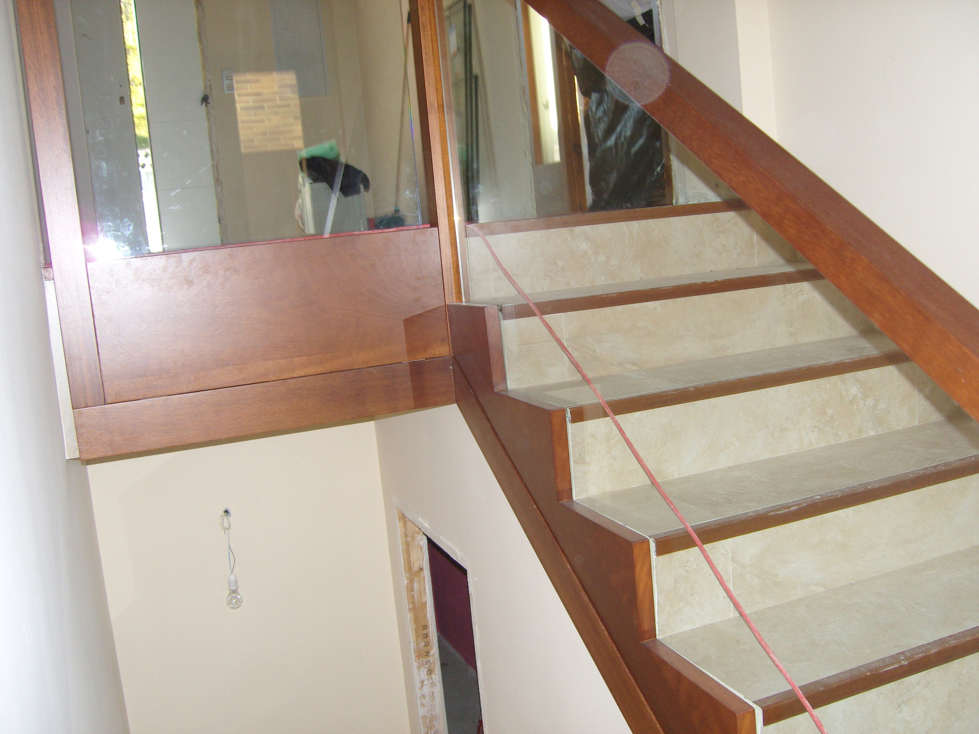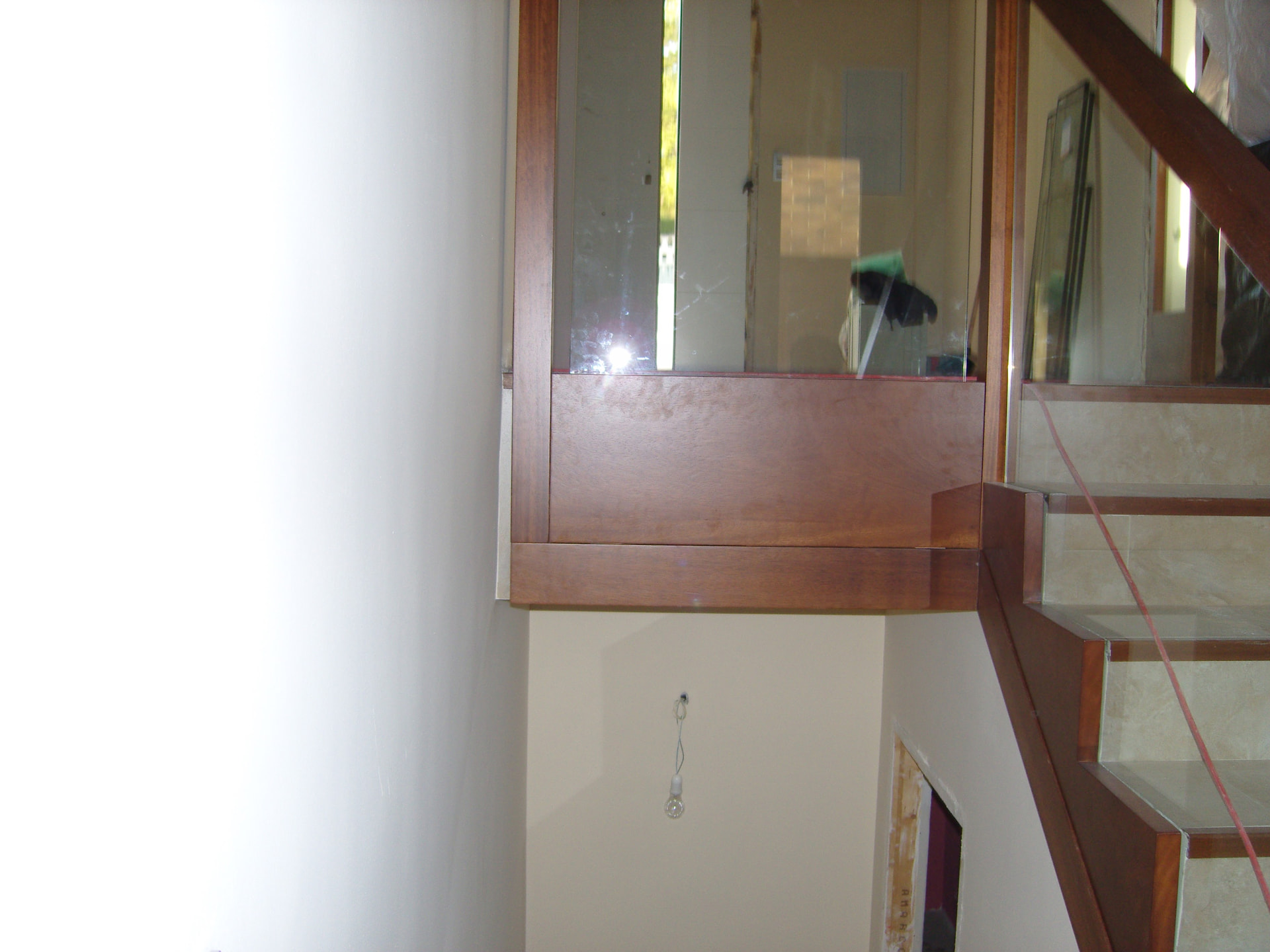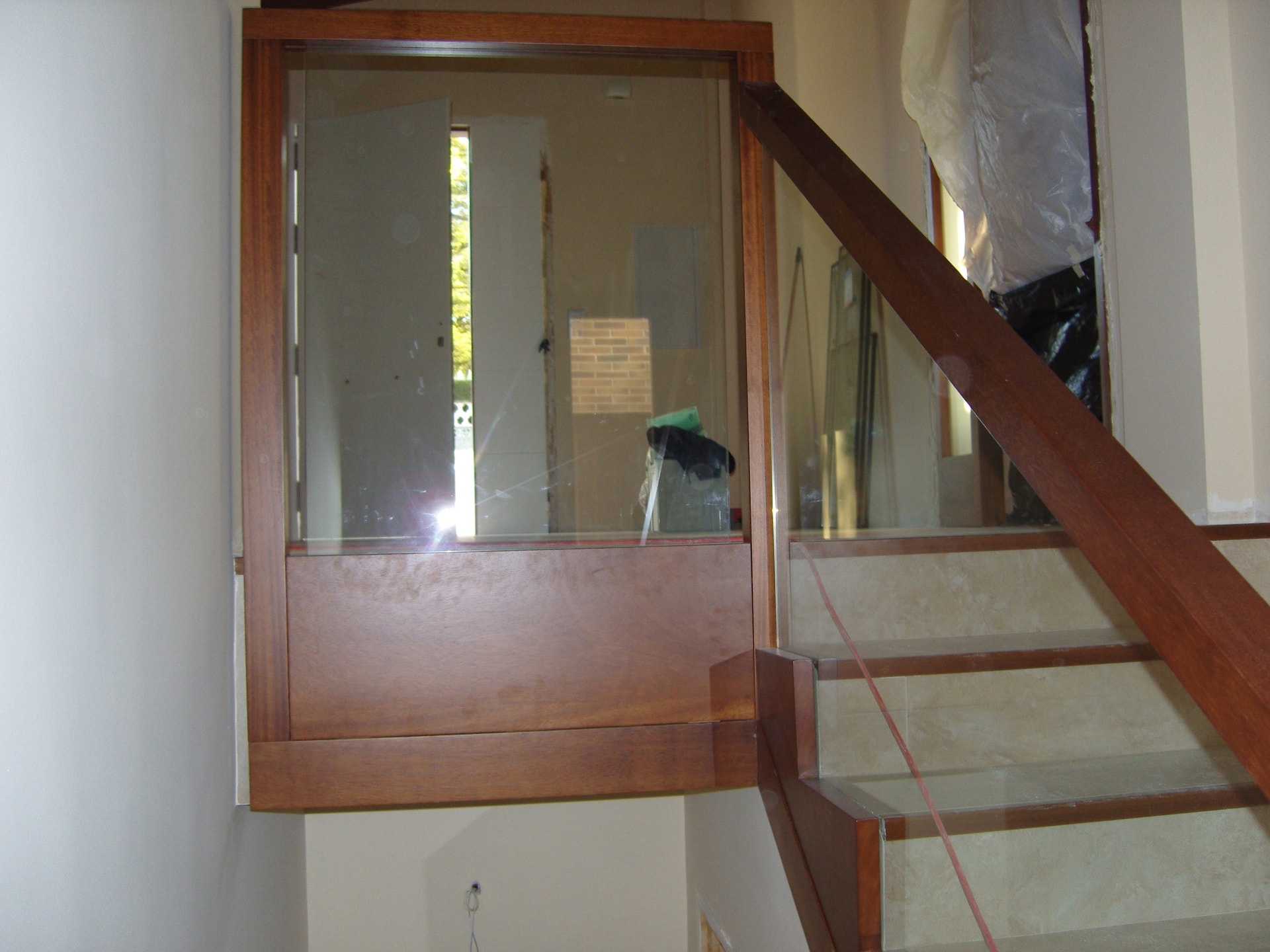 Buenos días, una baranda de iroko y cristal, sencilla de hacer, podemos colocar unas luces leds , sustituir el cristal por metal , por piedra acrílica , etc, etc , depende del gusto de cada cual
