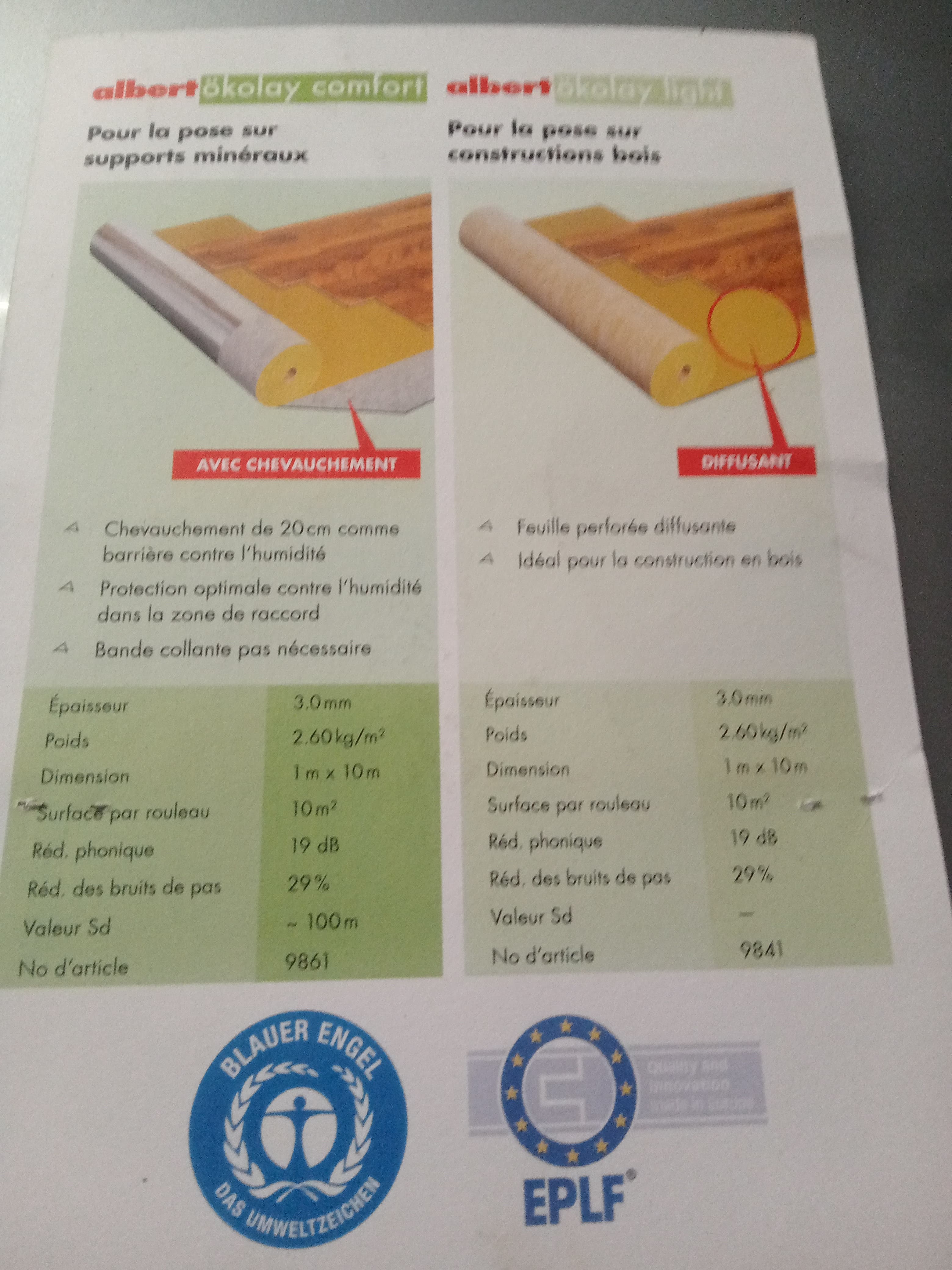 Buenos días, este es un buen producto para tarima flotante, hay diferentes capas , unas son para colocarlas sobre base de madera, osb, etc, otras sobre hormigón ,autonivelante, gres, etc