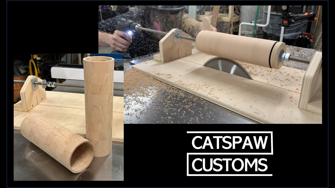Puedes hacerlo como dice @Angel , en la tupí clocas un tablero con una ranura de 8 mms , detienes la ranura a 7 centímetros del borde de la fresa y con el alimentador , con un solo rodillo que trabaje la pieza, pero tienes que colocar un perno de 8 milímetros al centro de la madera para que gire