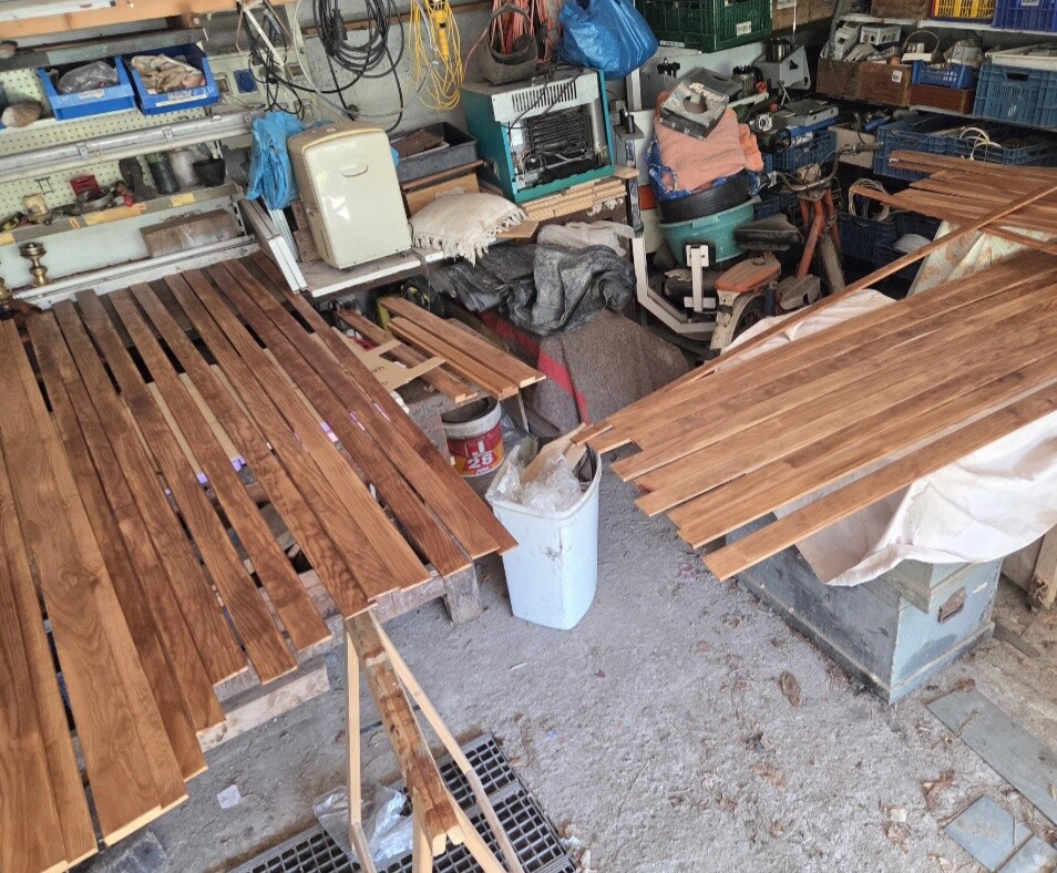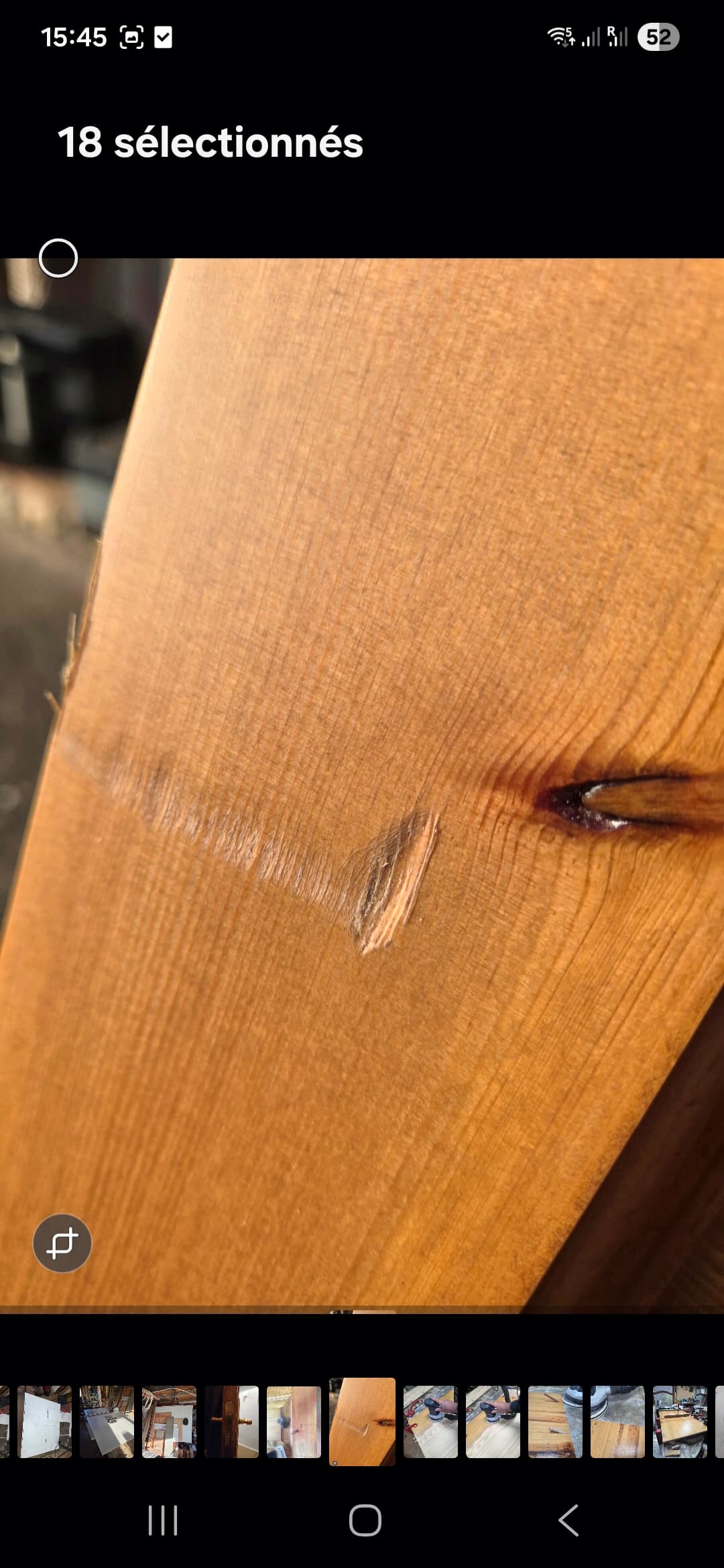 Después de preguntar a,Angel porque temía por el barniz y el calor, lo récupéré con la plancha y lana de acero. La cagué un poco con el tinte, es el mismo que el de la puerta pero claro, la madera sin cepillar absorbo mucho mas.
