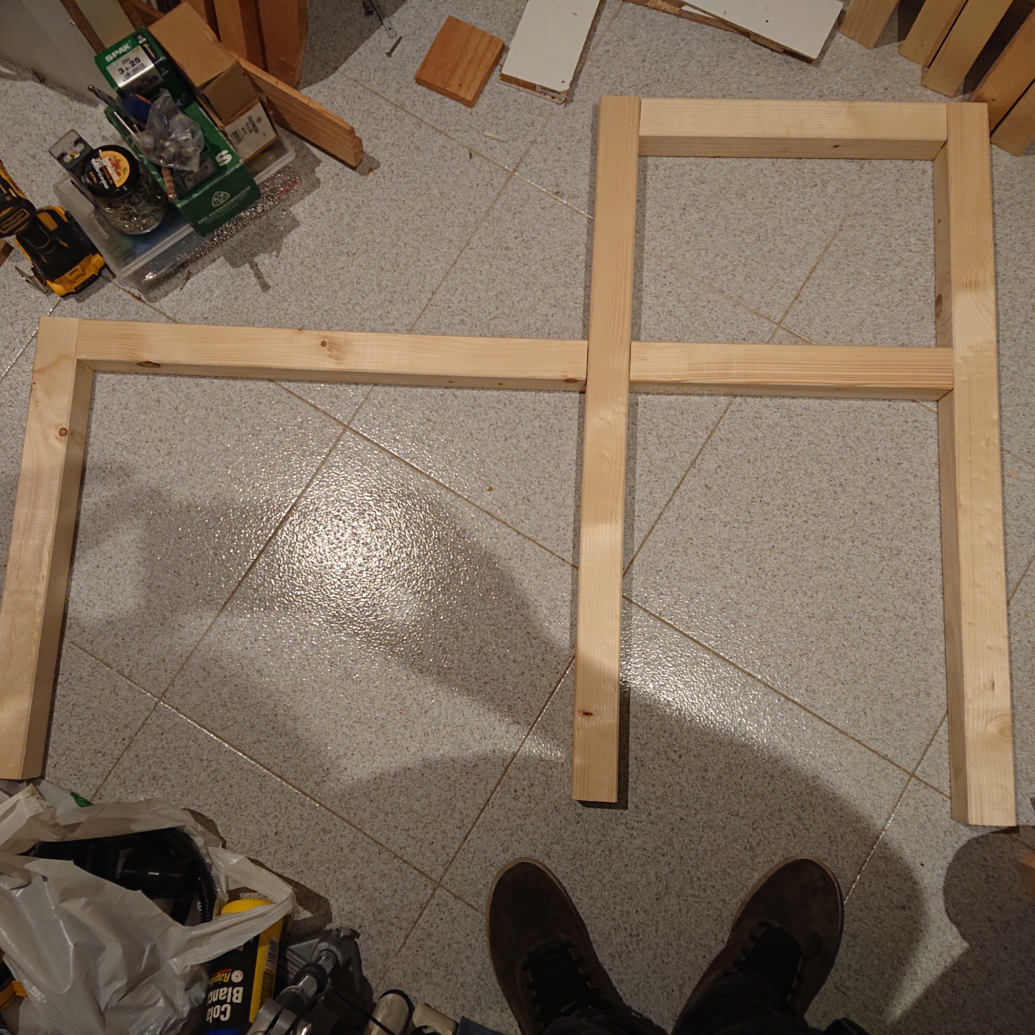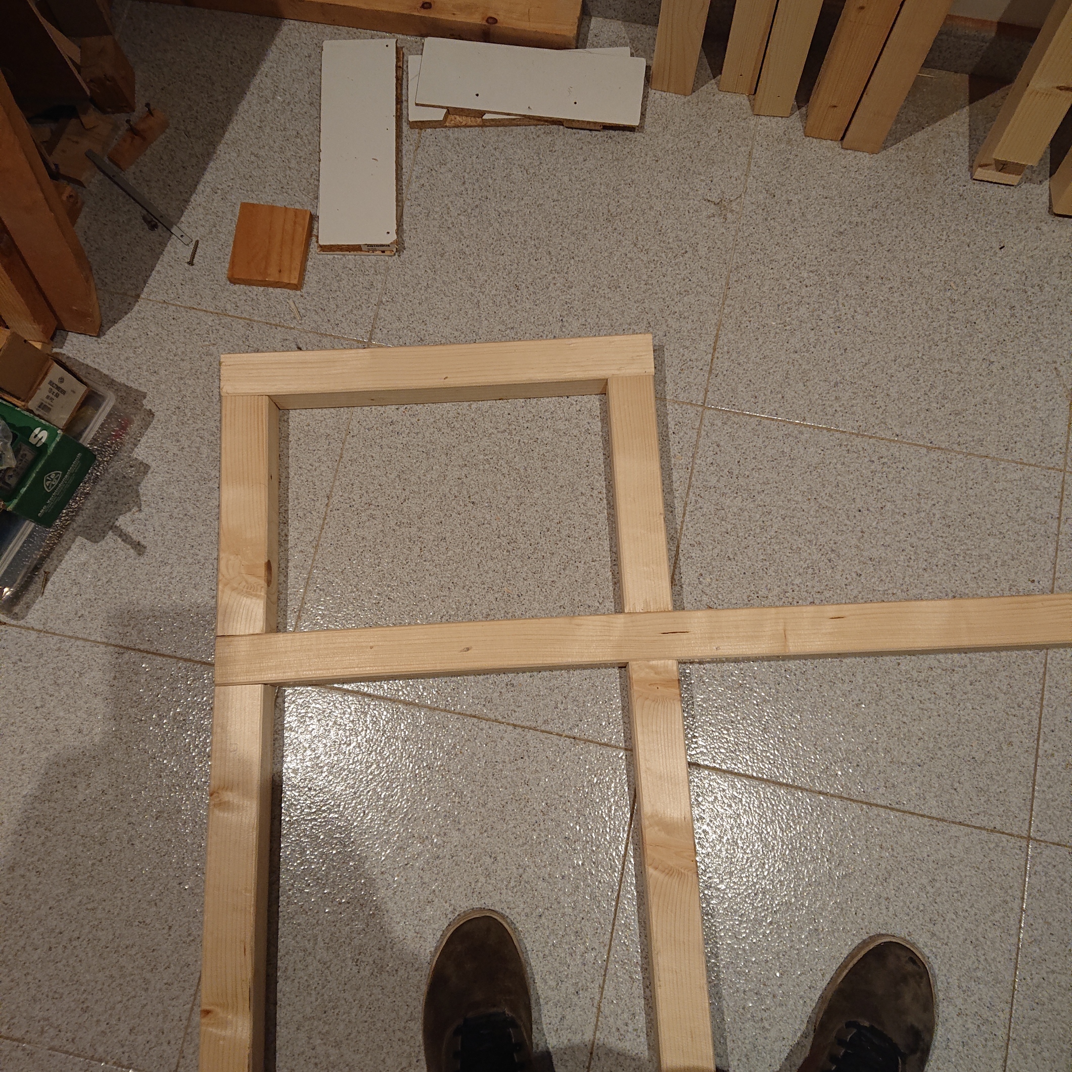 Y como tampoco va a ser un banco de trabajo como tal, sino que va a ser el trono de la 7492, pensé en lo que tu has dicho, de pegarlos entre si para darle mas sección, aunque si con solo un listón lo veo estable, así se quedará …