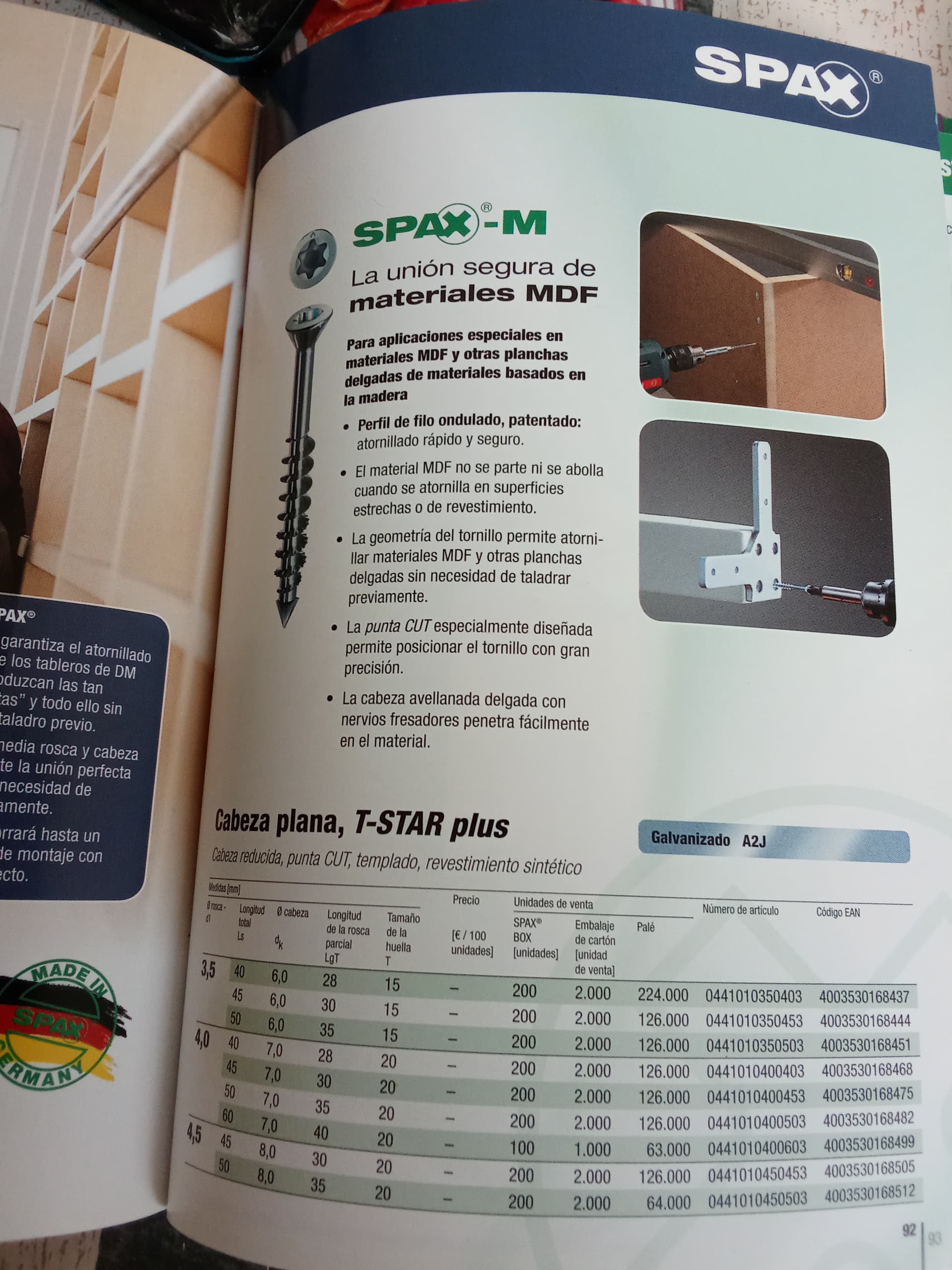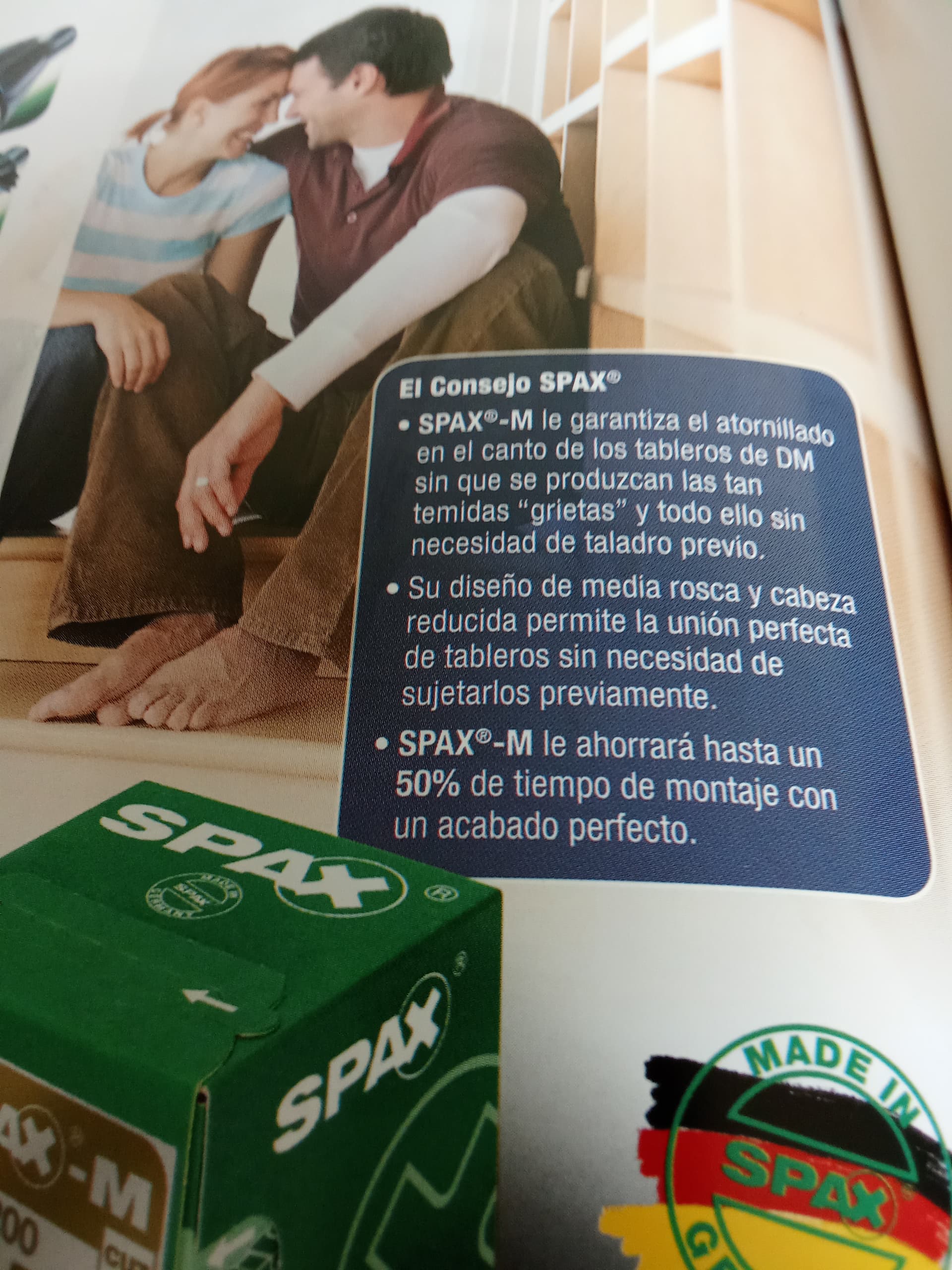 Las spax tienen una punta entran solas, pero tienen el alma ligeramente conica, y una cabeza gorda y conica, todo esto rompe el aglomerado sobre todo cuando estas cerca del canto.