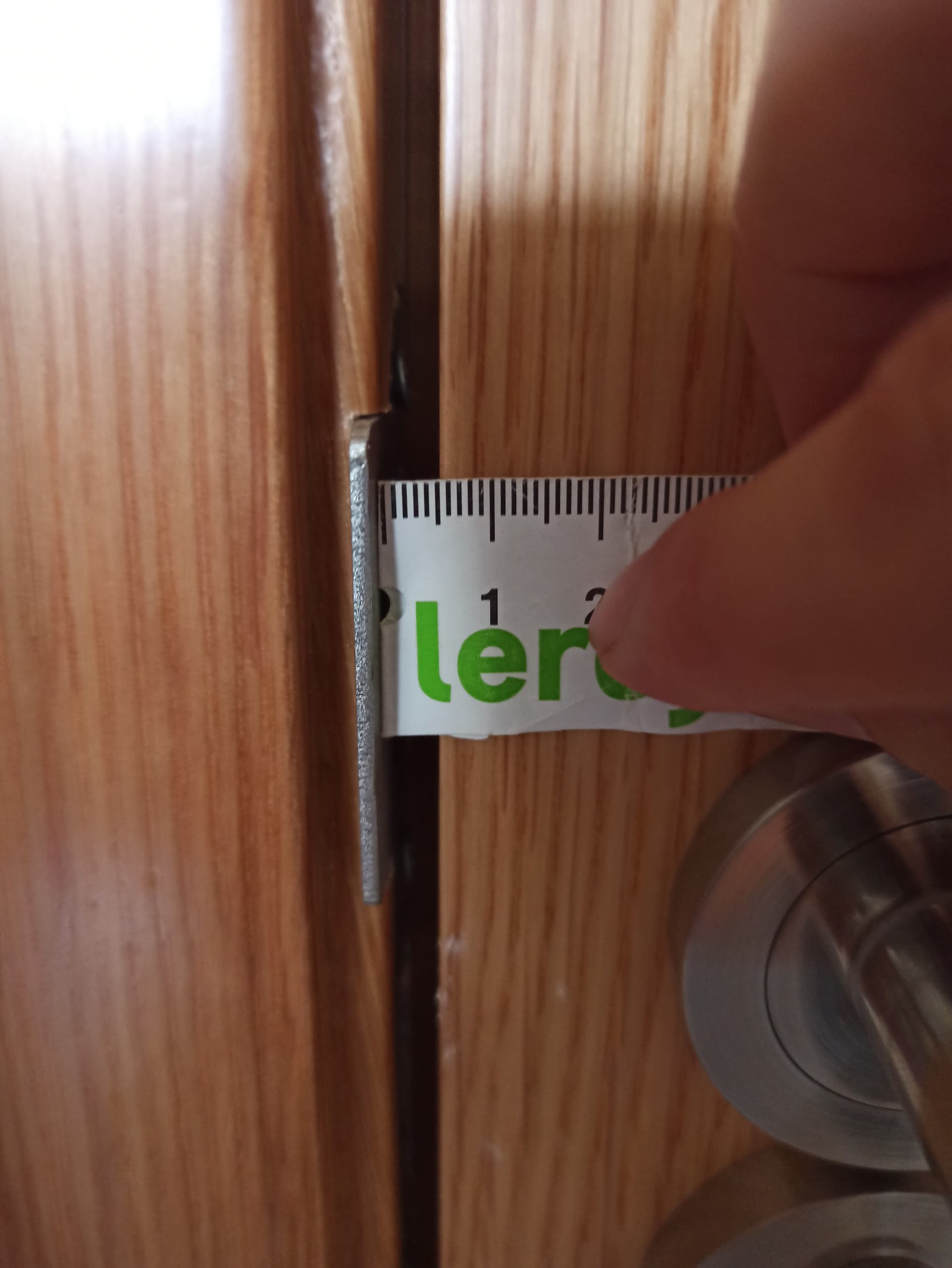 Lo de que entra luz no tiene que ver con el espacio que mides con el.metro sino con el espacio que queda entre la puerta y el rebajo del batiente cuando se estrella contra el. Puede ser que algo haya torcido en cuyo caso es dificil de solucionar o puede ser que sea necesario ajustar la chapa del marco donde cierra el picaporte. Suele llevar una chapita en la que se puede introducir un destornillador plano pequeño para doblarla un poco y asi la puerta ajusta mas con el marco y puede desaparecer ese paso de luz. Fijate si la puerta traquetea al estar cerrada. Si es asi, si hay un movimiento es cuestion de ajustar esa chapa.