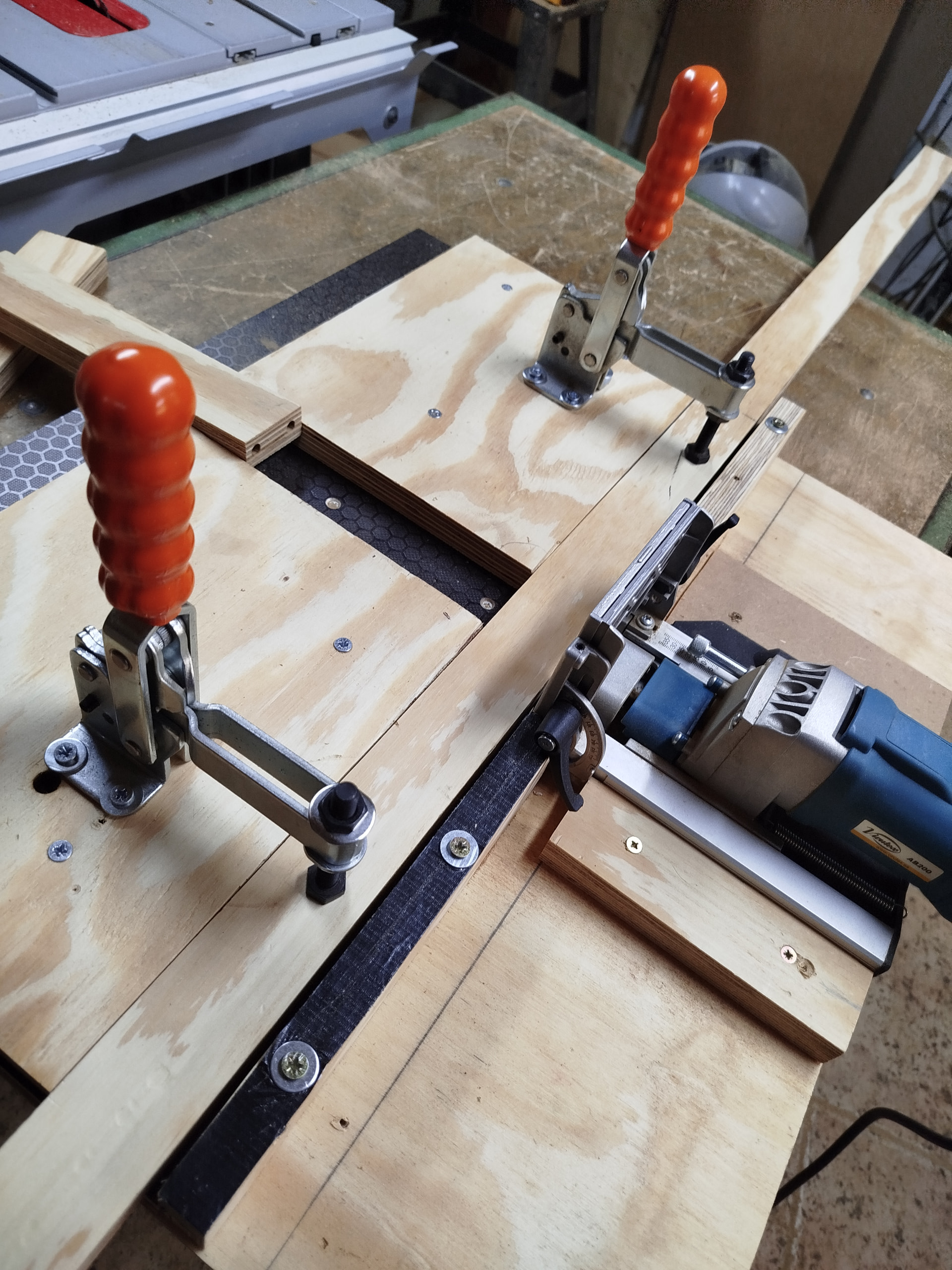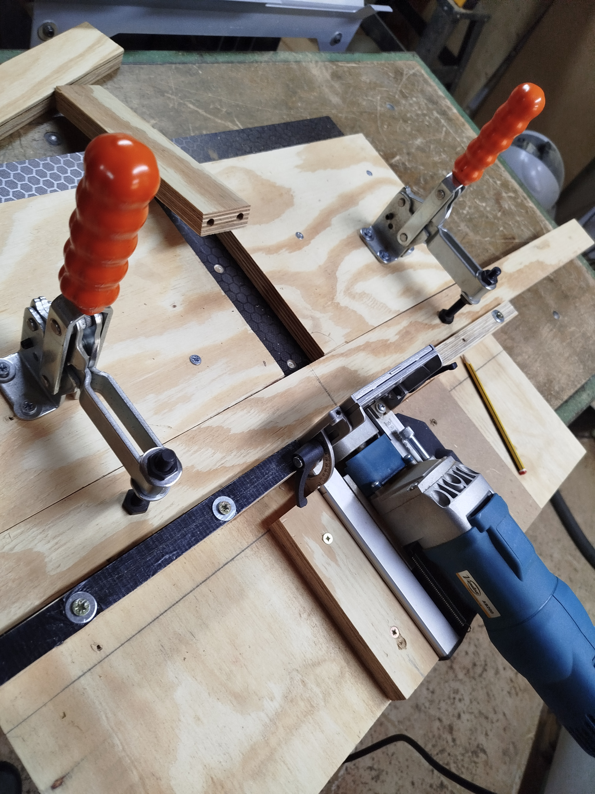 Supongo que la maquina no está pensada para hacer bastidores principalmente y no han previsto nada al respecto pero creo que no sería difícil hacer un accesorio como a la festool domino que es precisamente para trabajos repetitivos en listones.