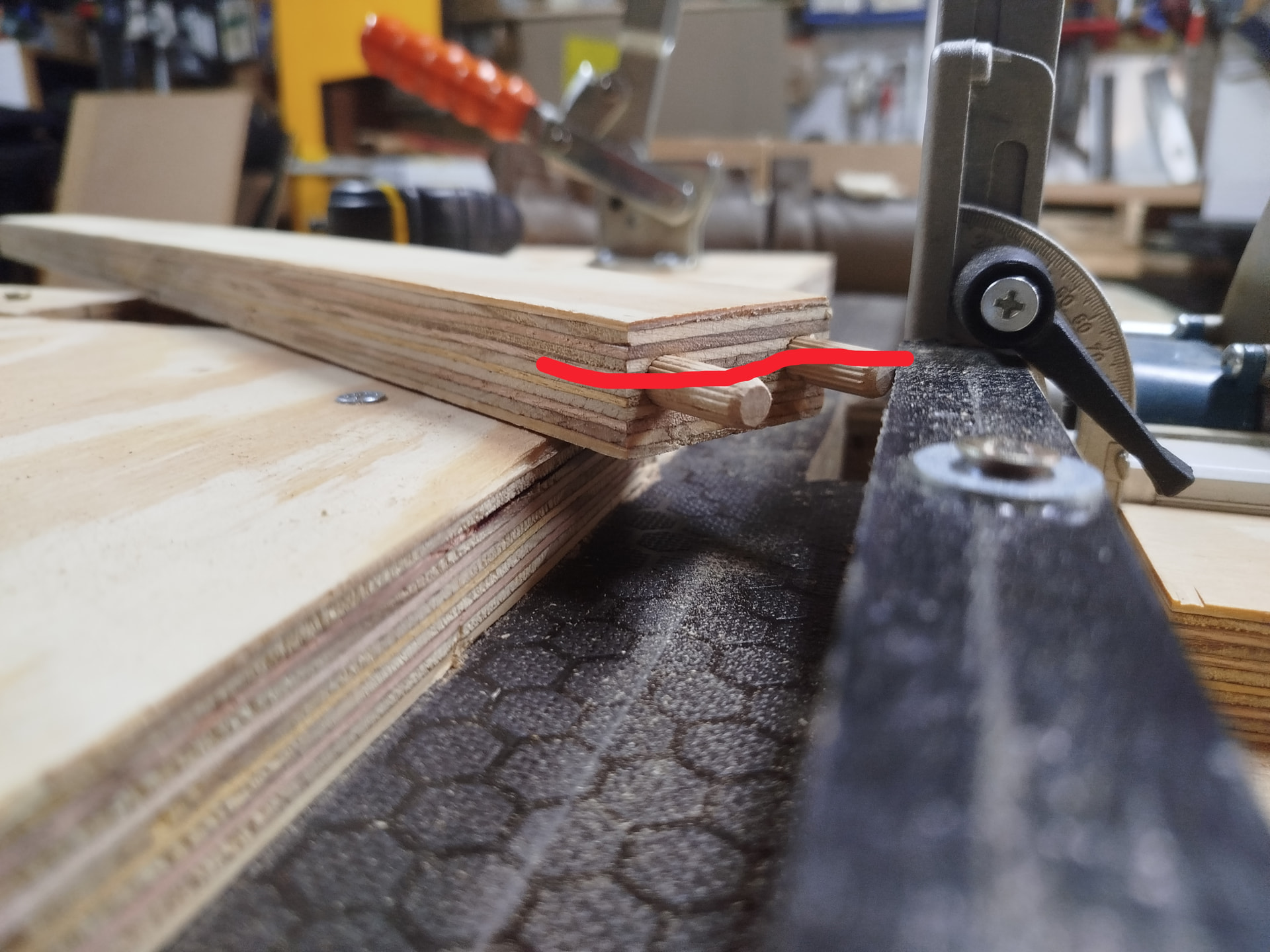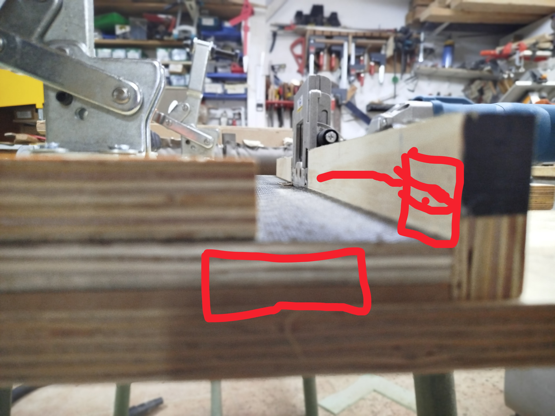 Así sale perfecto , la plantilla para hacer siempre los marcos con el contrachapado de 21 y saco la misma anchura siempre , los cortos ni mido centro ni nada los meto en el carril y perfecto, intenté hacerlo a mano pero no tenía suficiente Apollo y así es muy rápido y salió perfecto , saqué el centro y da igual por un lado que por otro a los 21 de grosor