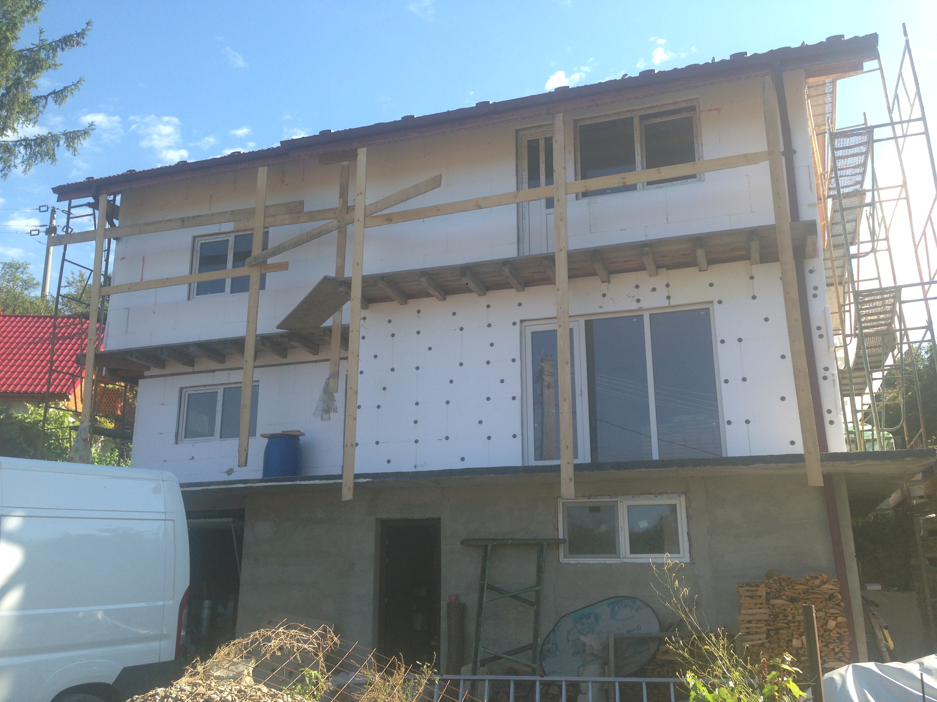 Solamente he protegido las partes exteriores con protección al agua (matacarcomas o lasur) contra los bichos; los aleros, las vigas que salen a la vista en los aleros y los balcones. No hay ni huellas ni marcas de xilofagos o otros tipos de bichos en la madera ni fuera ni dentro; ya que por dentro la casa no esta acabada y es fácil de localizar algún daño en la madera.