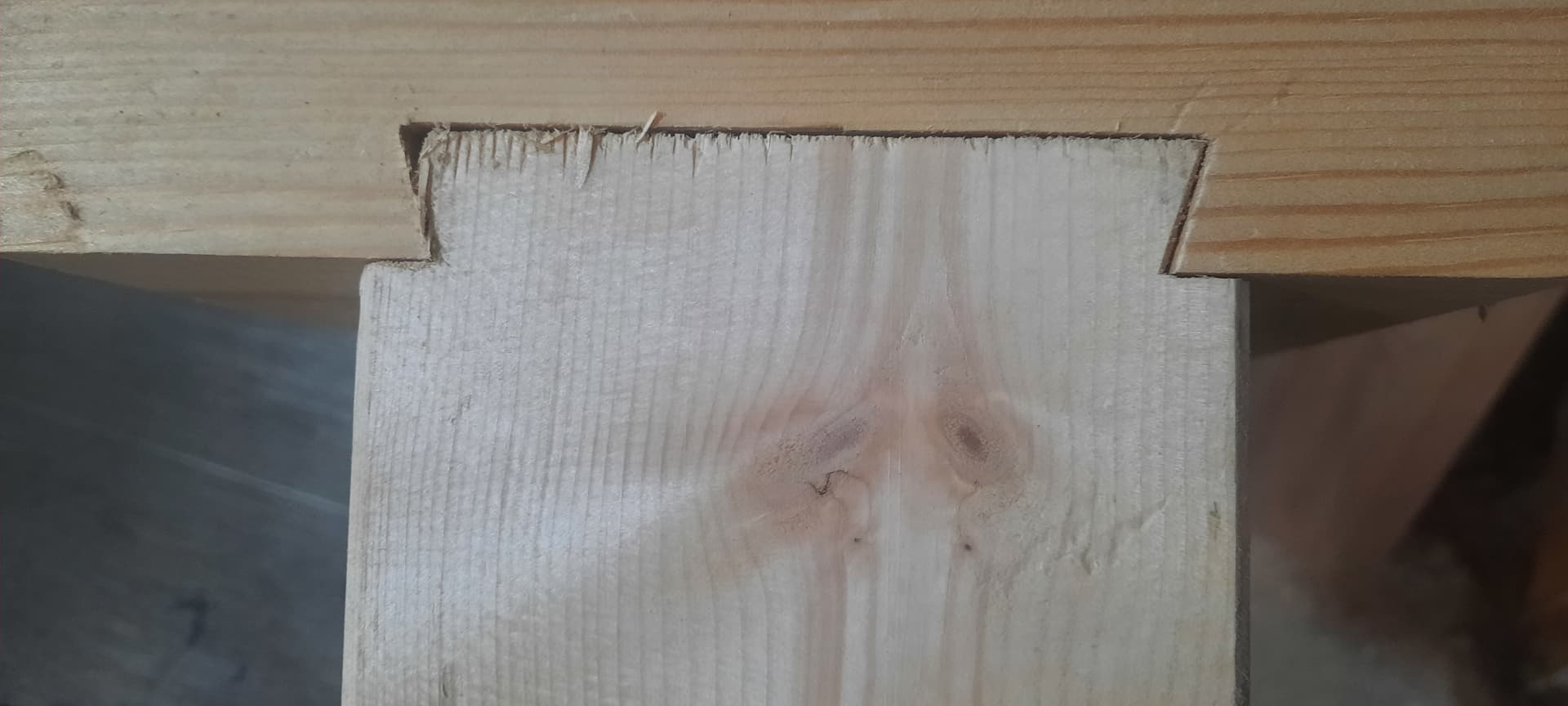 Yo les suelo dar 15 mm. Al entrar en cola de milano no hay posibilidad de que se salgan de ahi. Si no es en cola de milano le daria 20 minimo. Aqui em Asturias las estructuras que hacen profesionales de la madera se suele utilizar este metodo. Otra cosa es lo que hace el tipico albañil que entiende de todo y te agarra una motosierra y te dice que queda mejor el corte de motosierra que el de ingletadora… le casca dos tirafondos del 6x180 y espectacular…