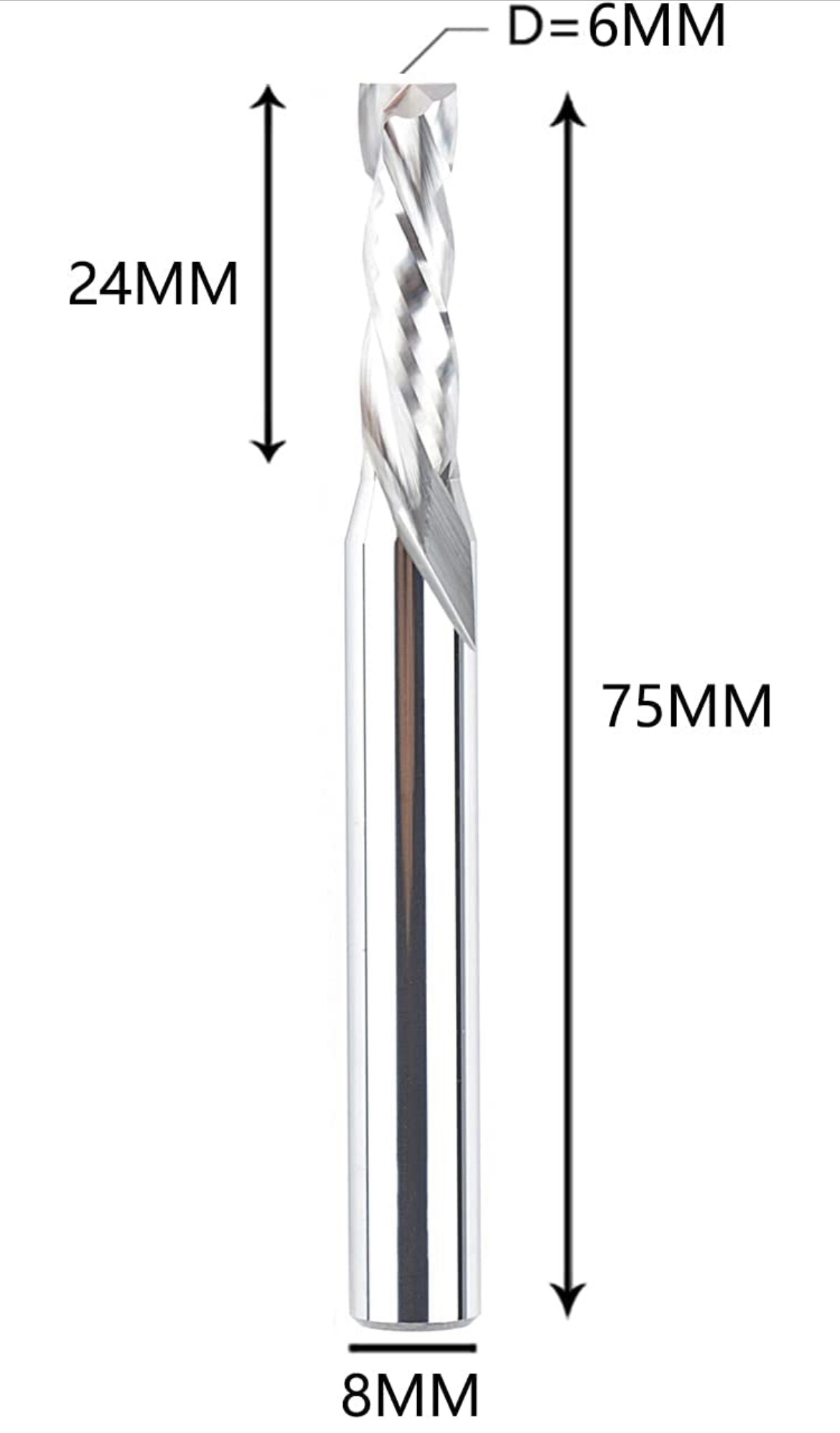 Para cortar uso fresas de este tipo, hacen un corte muy limpio. Las compro en Amazon o en AliExpress.