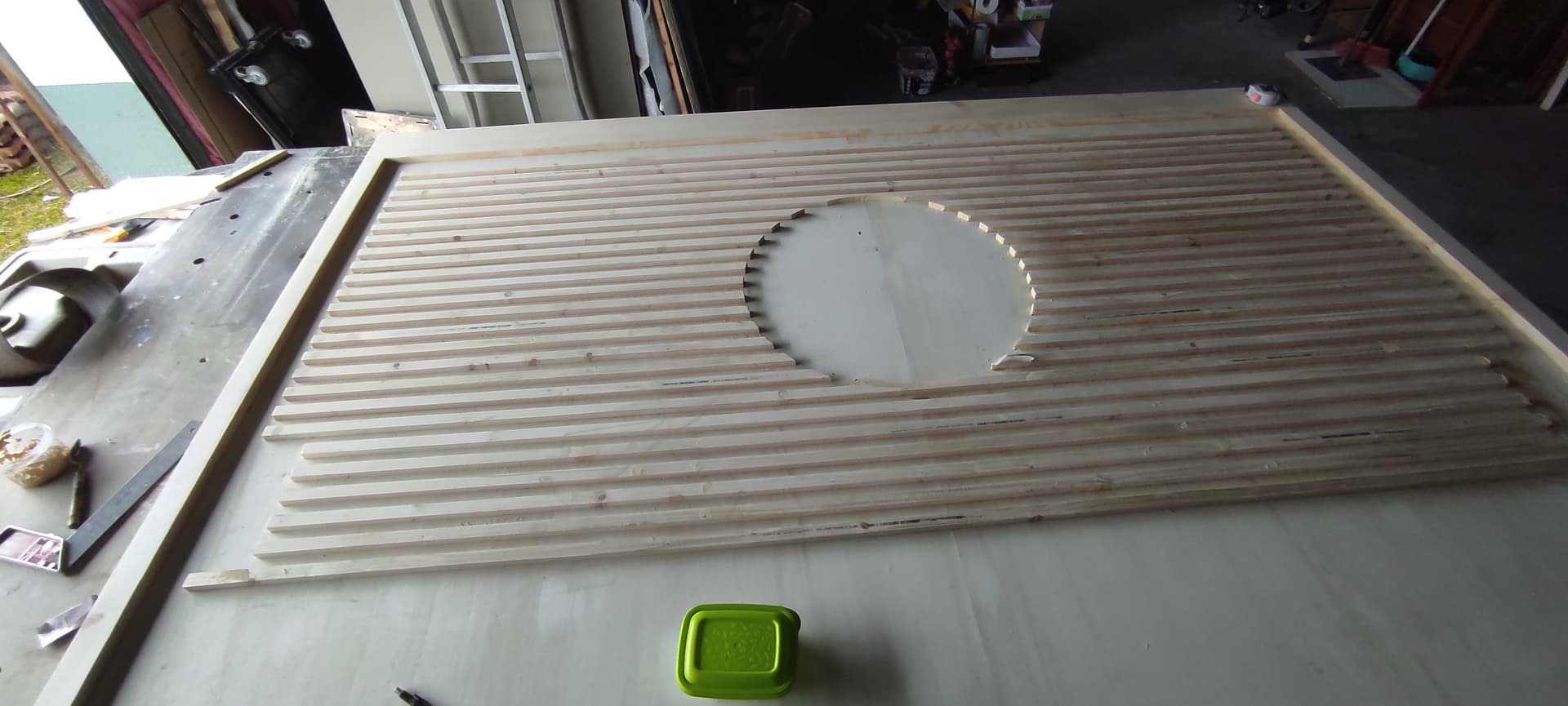 @Marin1 el círculo lo hago con una guía en fa fresadora, hago un agujero en el centro del diámetro que quiero y para adelante, a cortar en varias pasadas. Después saco una foto y la subo.