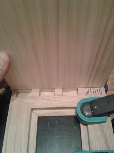 En cualquier caso lo quiero para repasar la profundidad del marco que conforma el frente del cajón y donde va un panel de aglomerado rechapado de 11 mm. En algunas zonas, sobre todo las centrales no queda aces y tengo que rebajarlo un pelín hasta que no note la diferencia al pasar la punta de los dedos.